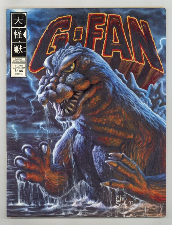 Tags: GodzillaPublished Feb 1997 by Daikaiju Enterprises.$15.00G-Fan is the publication for Godzilla fans. This issue includes: cover art by Chris Scalf; Guilala vs. Gappa; The Nature of the Beast; The Disney—Toho Conspiracy; Origin of Angilas; Old Testament Kaiju?; Kaiju Cuisine; Godzilla vs. The Smog Monster; Foreign G-Posters; fanzines; interview with Random House senior editor, Alice Alfonsi; news, product reviews, and fan fiction; and G-Con 97. Jan/Feb, 1997. 84 pgs. Cover price $3.95.