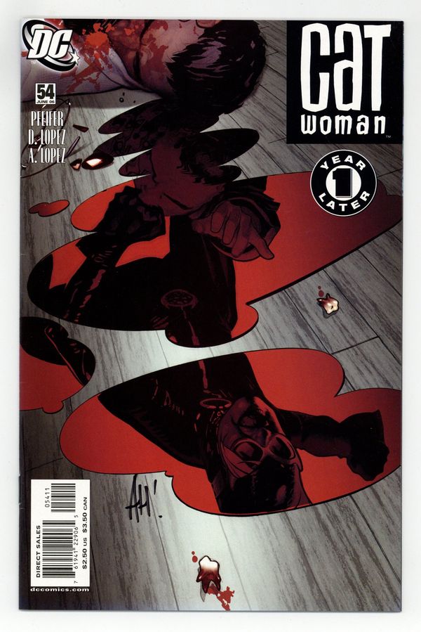 Written by Will Pfeifer Art by David Lopez & Alvaro Lopez. Cover by Adam Hughes. The jarring changes to Selina Kyle's life unveiled last issue give Holly a nasty turn as Catwoman attempts to restore order in the East End. And as secrets from the last year are revealed, Selina has her hands full with the individual who's become the most important person in her life. ? 32 pg, FC Cover price $2.25.