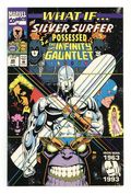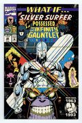 Tags: Infinity Gauntlet (part What If?), Alternate Reality$20.00"What If the Silver Surfer Possessed the Infinity Gauntlet?" Script by Ron Marz, pencils by Scott Clark (with Kevin West), inks by Pamela Eklund. Guest starring Thanos and Adam Warlock. Appearances by Captain America, Mephisto, Doctor Strange, and Shalla-Bal. Cameos by Galactus, Wolverine, Cyclops, the Hulk, the Scarlet Witch, the Sub-Mariner, She-Hulk, Eros, the Vision, Cloak, Firelord, Drax the Destroyer, Thor, Nova, Quasar, Iron Man, Spider-Man, Doctor Doom, Nebula, Terraxia, and Captain Marvel. Cover price $1.25.