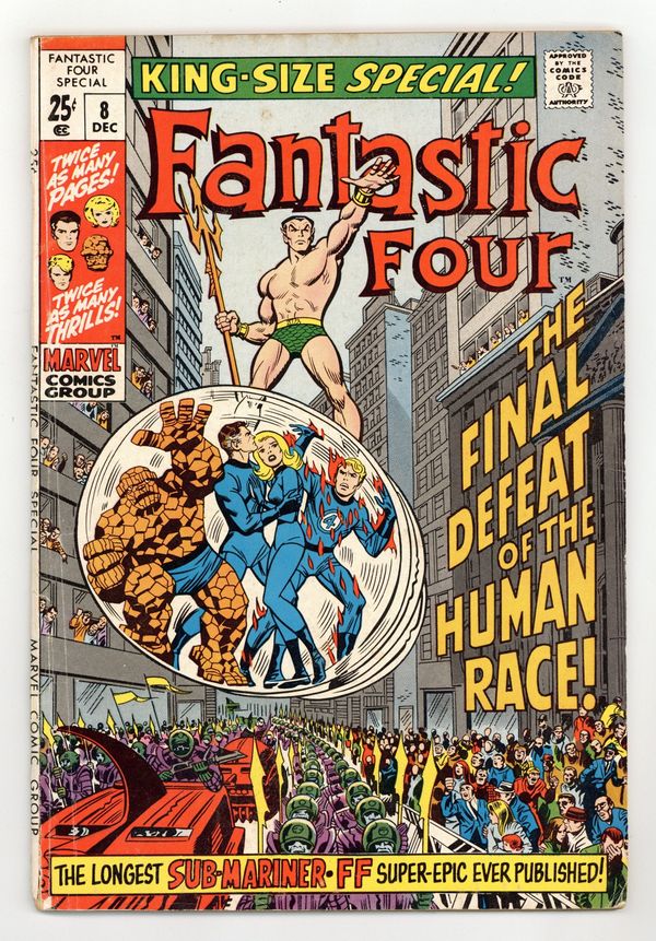 All Jack Kirby reprints: "Sub-Mariner Versus the Human Race" and gallery pages from FF Annual 1. New John Romita Sr./John Verpoorten cover. 68 pgs. Cover price $0.25.