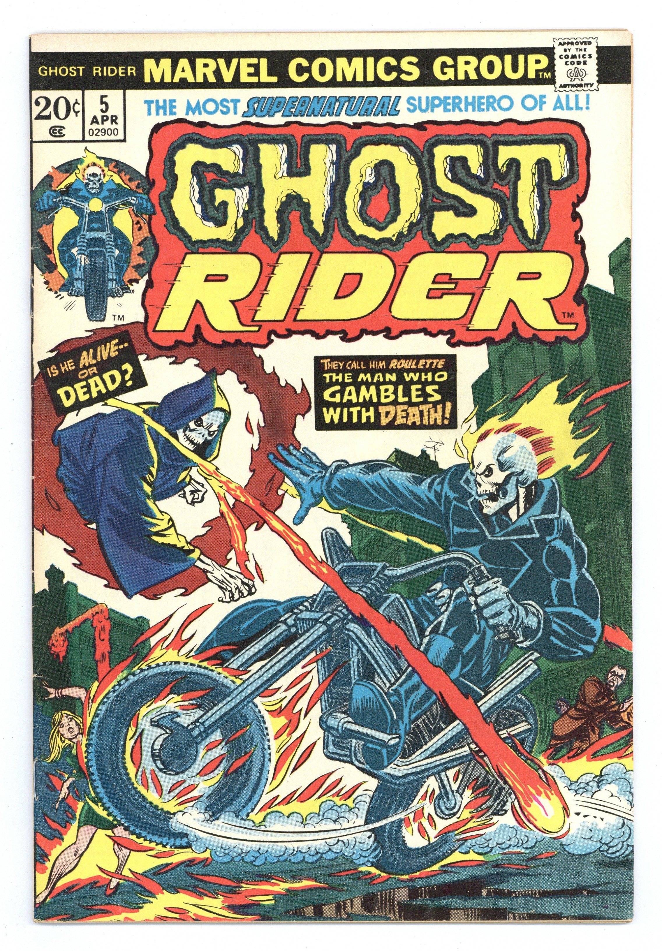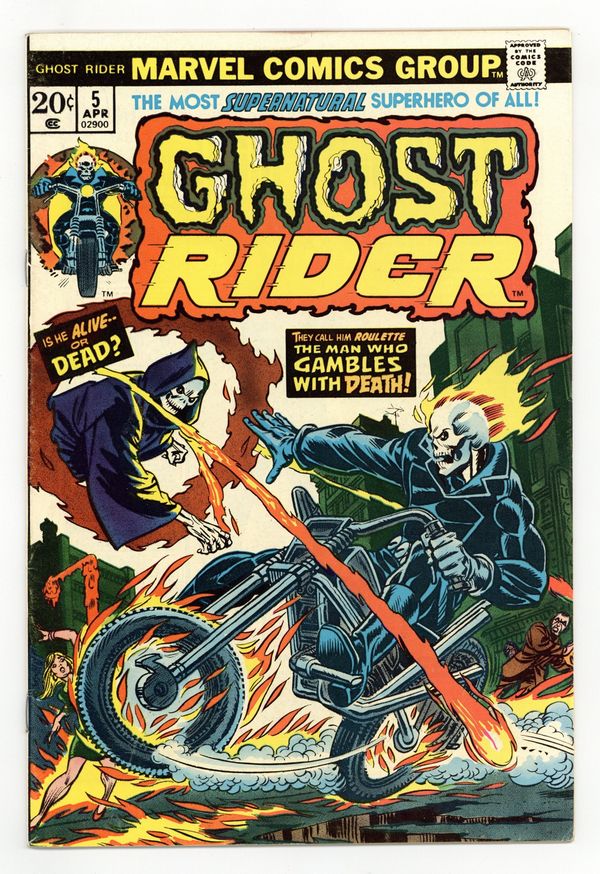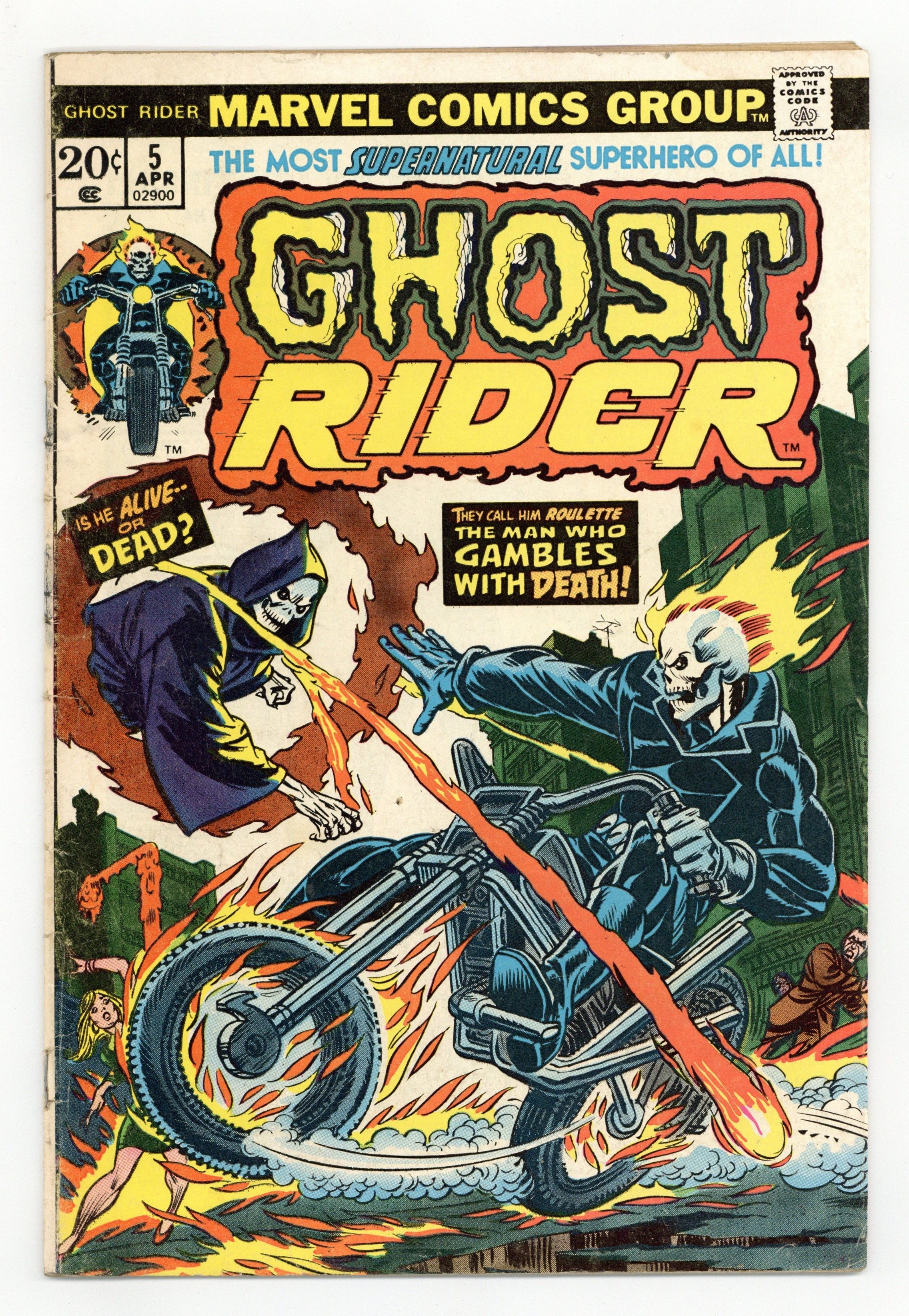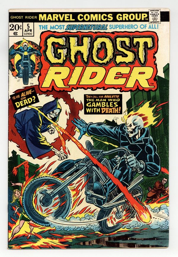 Last 20-cent cover price. "And Vegas Writhes in Flame!" Story by Marv Wolfman and Doug Moench. Art by Jim Mooney and Sal Trapani. Cover by John Romita, Sr. The Ghost Rider must face the demonic power of the man called Roulette! Featuring a macabre appearance by Mephisto. 32 pages, FC. NOTE: The letters page contains Marvel Value Stamp series A # 24 (the Falcon). Cover price $0.20.