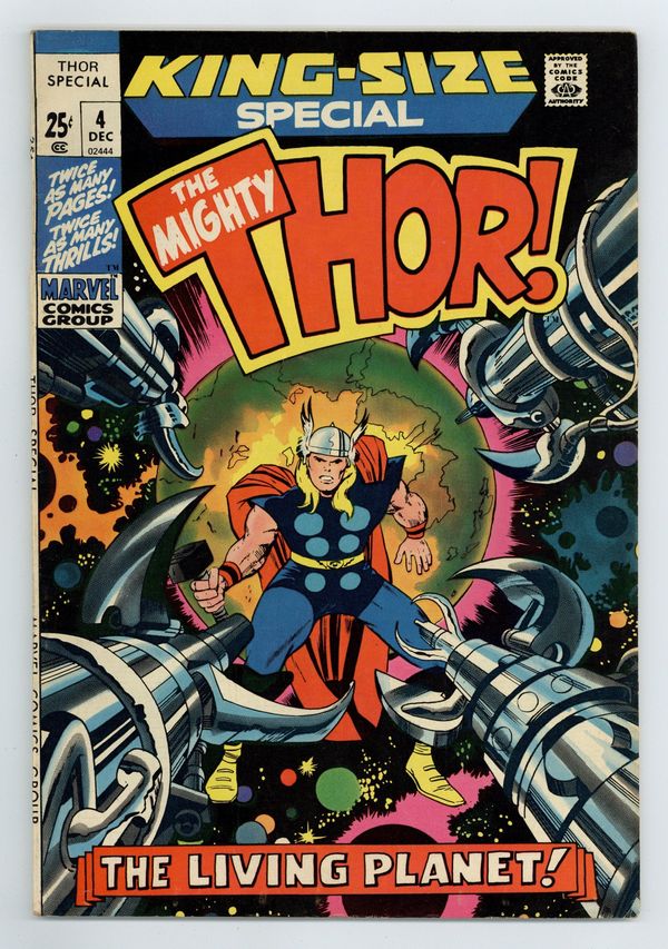 All Jack Kirby reprints: "They Strike From Space" (from Thor 131); "Rigel, Where Gods May Fear to Tread" (Thor 132); and "The Boyhood of Loki" (Journey Into Mystery 113). Scripts by Stan Lee, pencils by Jack Kirby, inks by Vince Colletta. Cover price $0.25.