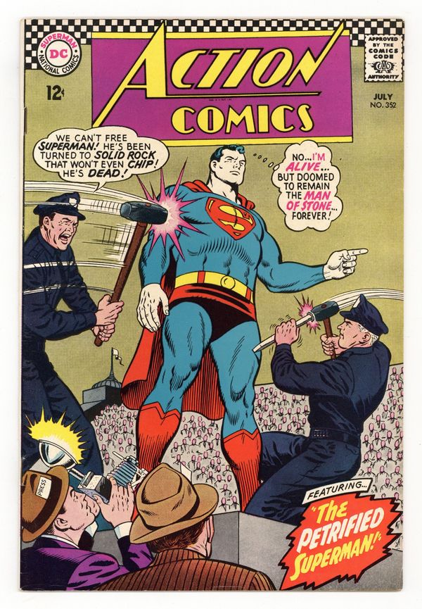 Cover pencils by Curt Swan, inks by George Klein. "The Victory of Zha-Vam!", script by Otto Binder, art by Wayne Boring; Superman engages Zha-Vam in battle several times but cannot overcome the powers of the ancient gods. "Jimmy Olsen's Two Brides," script by Jerry Siegel, pencils by Curt Swan, inks by Stan Kaye; Now married to Jimmy, Linda tries to make Jimmy fall in love with Supergirl as well. Batman ad. The Atom ad. 36 Pages, Full Color. $0.12 Cover price $0.12.