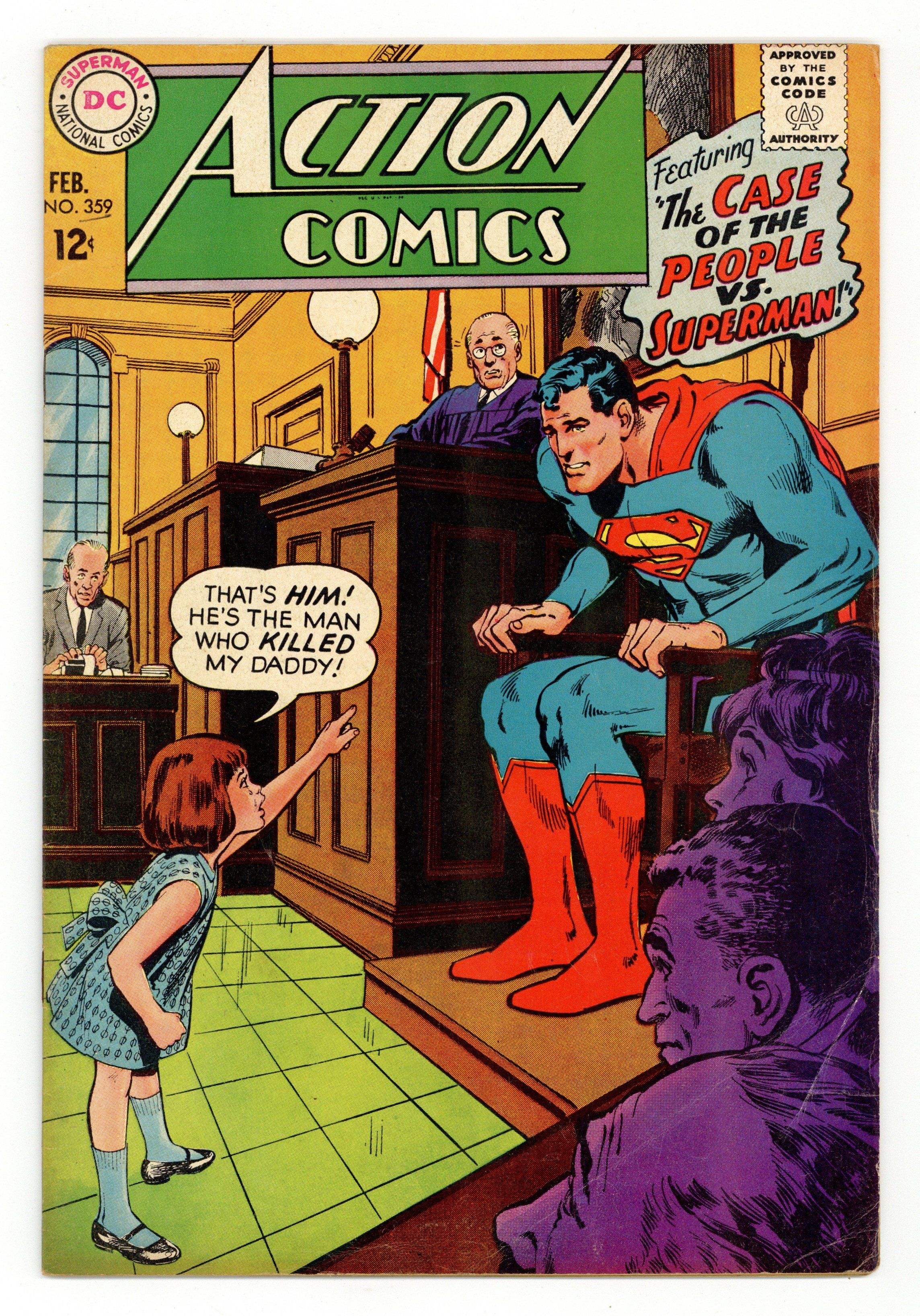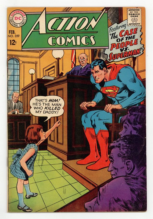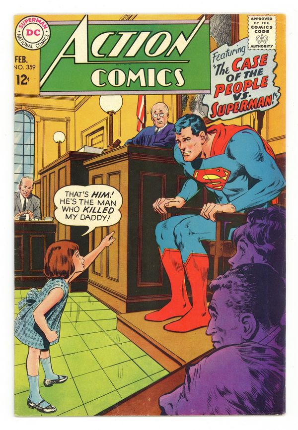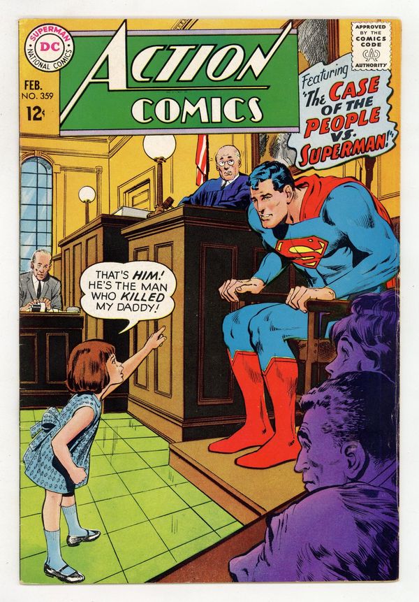 Tags: Print Run Statistics$22.00Cover by Neal Adams. "The Case of the People Against Superman!", script by Leo Dorfman, pencils by Curt Swan, inks by George Klein; Superman stands trial for the accidental killing of Ron Noble. Half-page ad reproducing Neal Adams pencils to the cover of Lois Lane #81. Letters to the editor from comic writers Mark Evanier, Martin Pasko, and Tony Isabella, and from comics artist Dave Cocrkum. The letters page also contains a statement of ownership - average print run 720,000; average paid circulation 420,900. Superman ad. "The Super-Initiation of Supergirl!", script by Otto Binder, art by Kurt Schaffenberger; When Supergirl finds out that the Xi-Pi-Hi-Fi sorority is engaged in brutal hazing, she applies to join and turns the tables on the bullies. 36 Pages, Full Color. $0.12 Cover price $0.12.