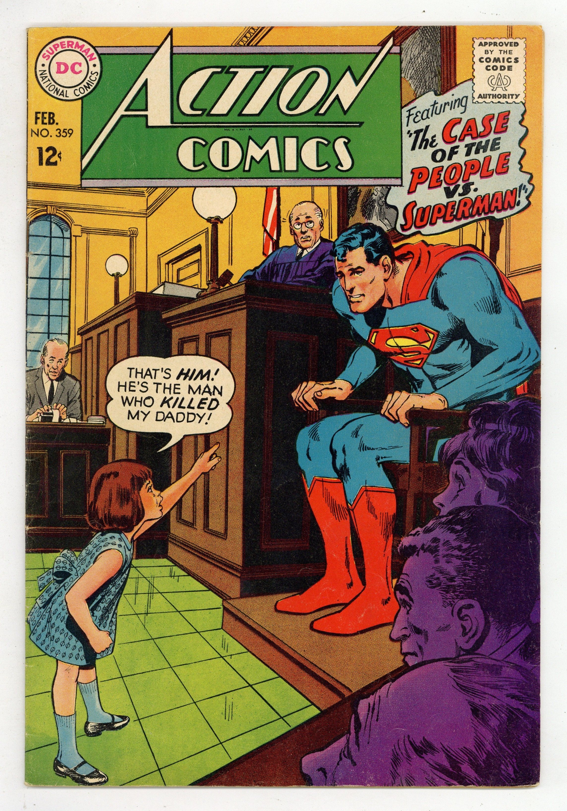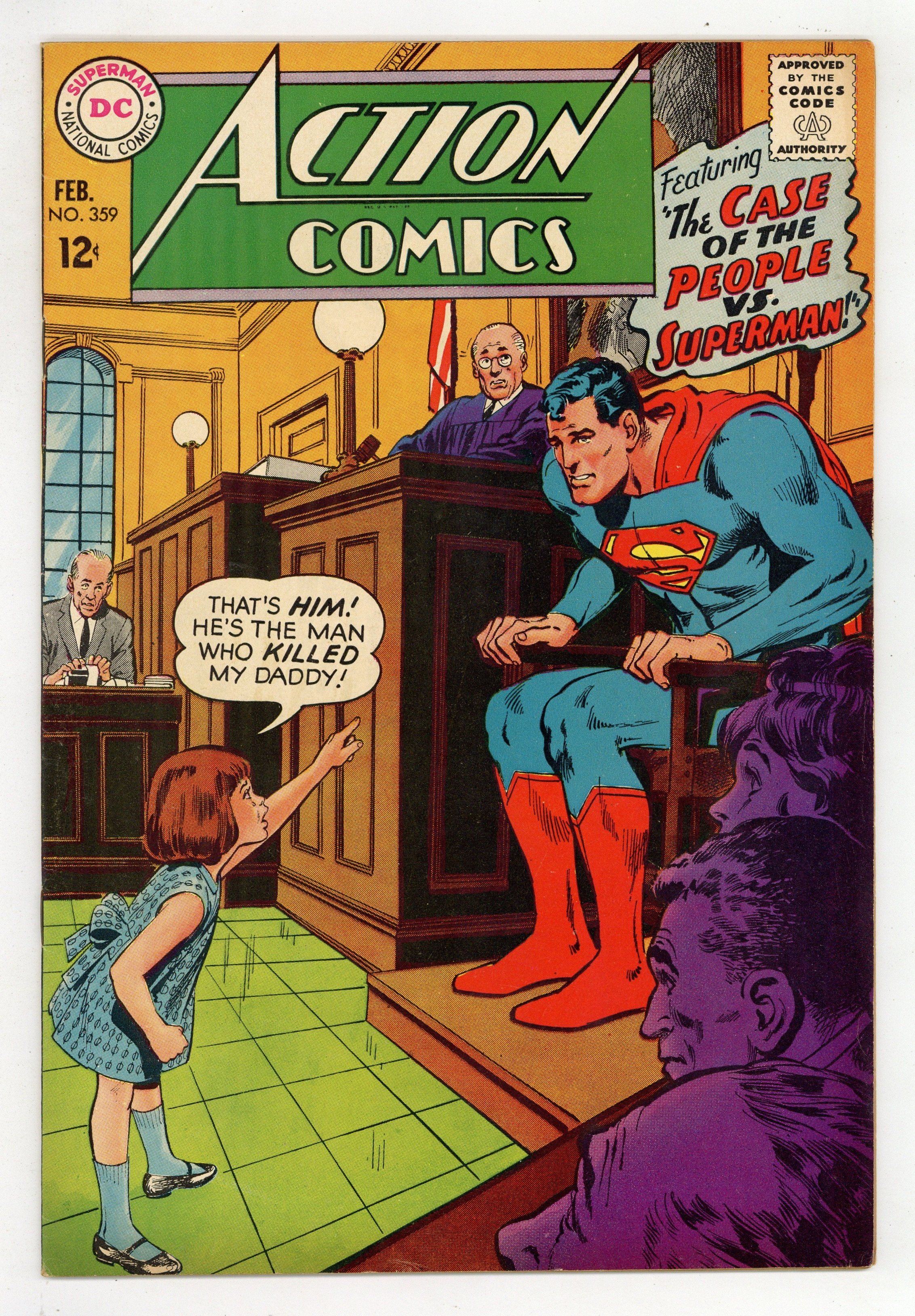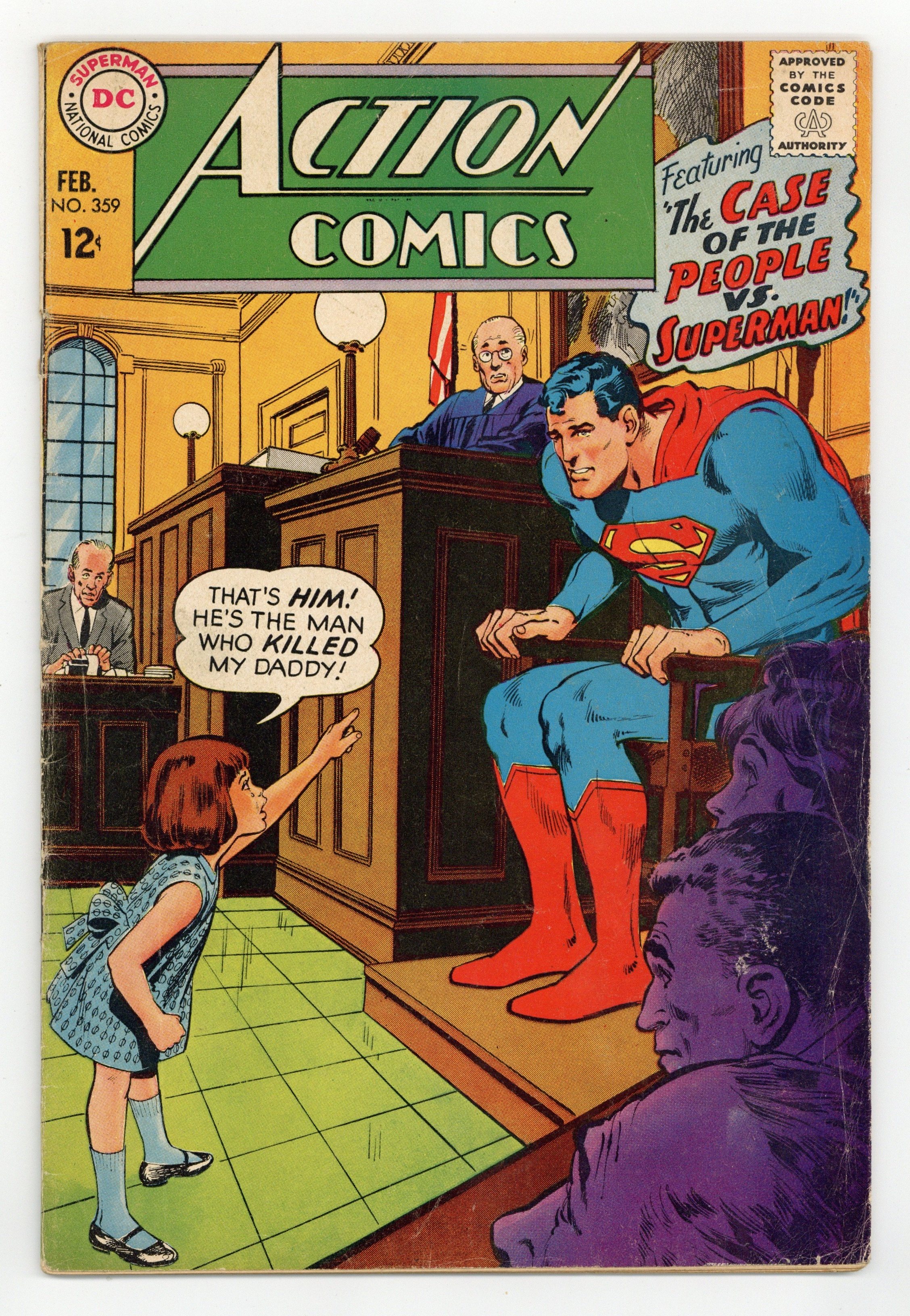 Tags: Print Run Statistics$22.00Cover by Neal Adams. "The Case of the People Against Superman!", script by Leo Dorfman, pencils by Curt Swan, inks by George Klein; Superman stands trial for the accidental killing of Ron Noble. Half-page ad reproducing Neal Adams pencils to the cover of Lois Lane #81. Letters to the editor from comic writers Mark Evanier, Martin Pasko, and Tony Isabella, and from comics artist Dave Cocrkum. The letters page also contains a statement of ownership - average print run 720,000; average paid circulation 420,900. Superman ad. "The Super-Initiation of Supergirl!", script by Otto Binder, art by Kurt Schaffenberger; When Supergirl finds out that the Xi-Pi-Hi-Fi sorority is engaged in brutal hazing, she applies to join and turns the tables on the bullies. 36 Pages, Full Color. $0.12 Cover price $0.12.