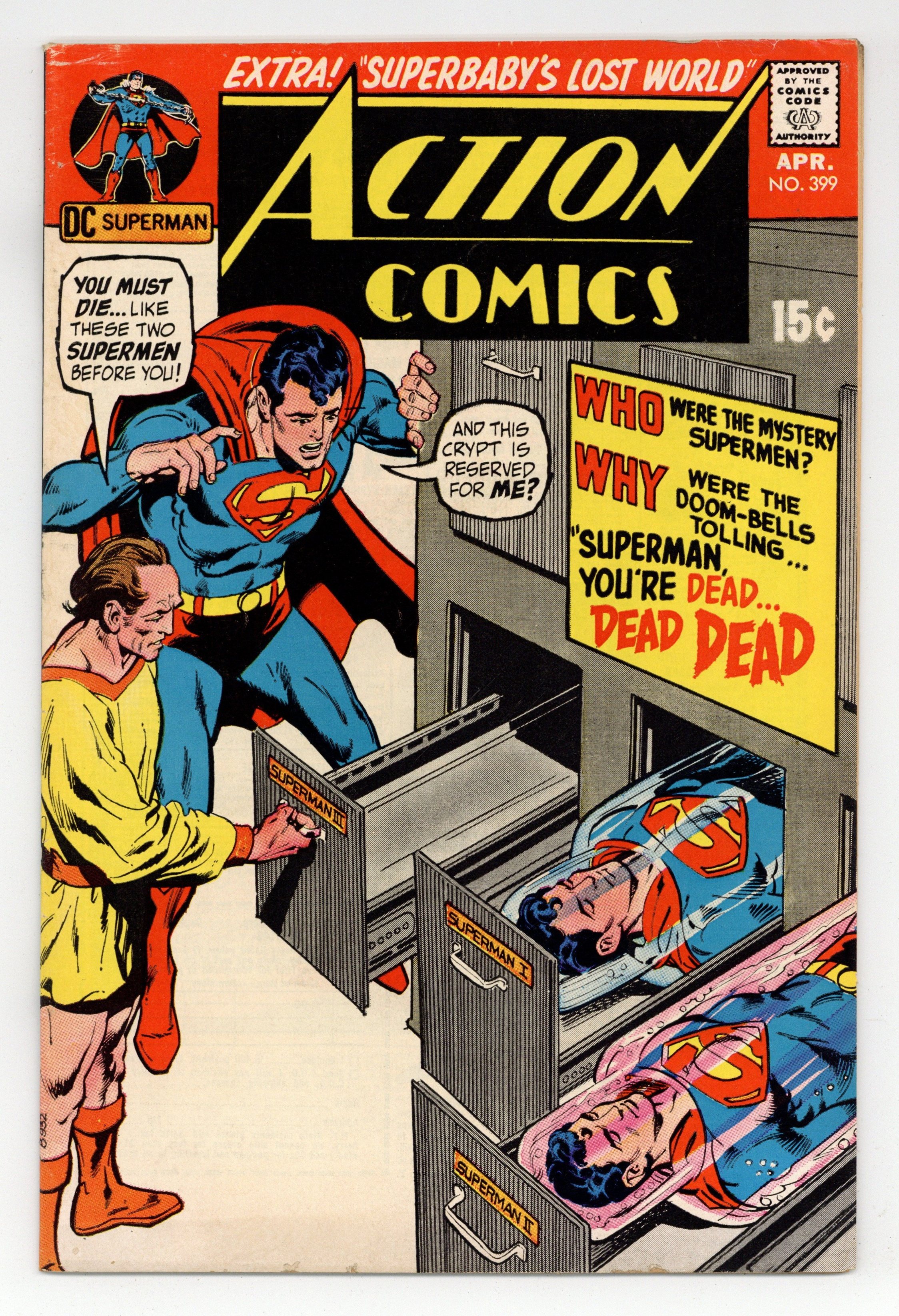 Cover pencils by Neal Adams, inks by Dick Giordano. "Superman, You're Dead... Dead... Dead," script by Leo Dorfman, pencils by Curt Swan, inks by Murphy Anderson; Superman is brought to the 24th century with other heroes from the past as part of a future history lesson, but he learns that he may really be the second duplicate Superman created after the first one from Krypton, died; Appearances by George Custer, Abraham Lincoln, and George Washington. Untold Story of Superman's Childhood back-up, "Superbaby's Lost World!", script by Leo Dorfman (as Geoff Brown), pencils by Curt Swan, inks by Murphy Anderson; The Kents' happy day at an amusement park is disrupted when two jewel thieves stumble on super-powered baby Clark. Letter to the editor from comics writer Martin Pasko. 36 Pages, Full Color. $0.15 Cover price $0.15.