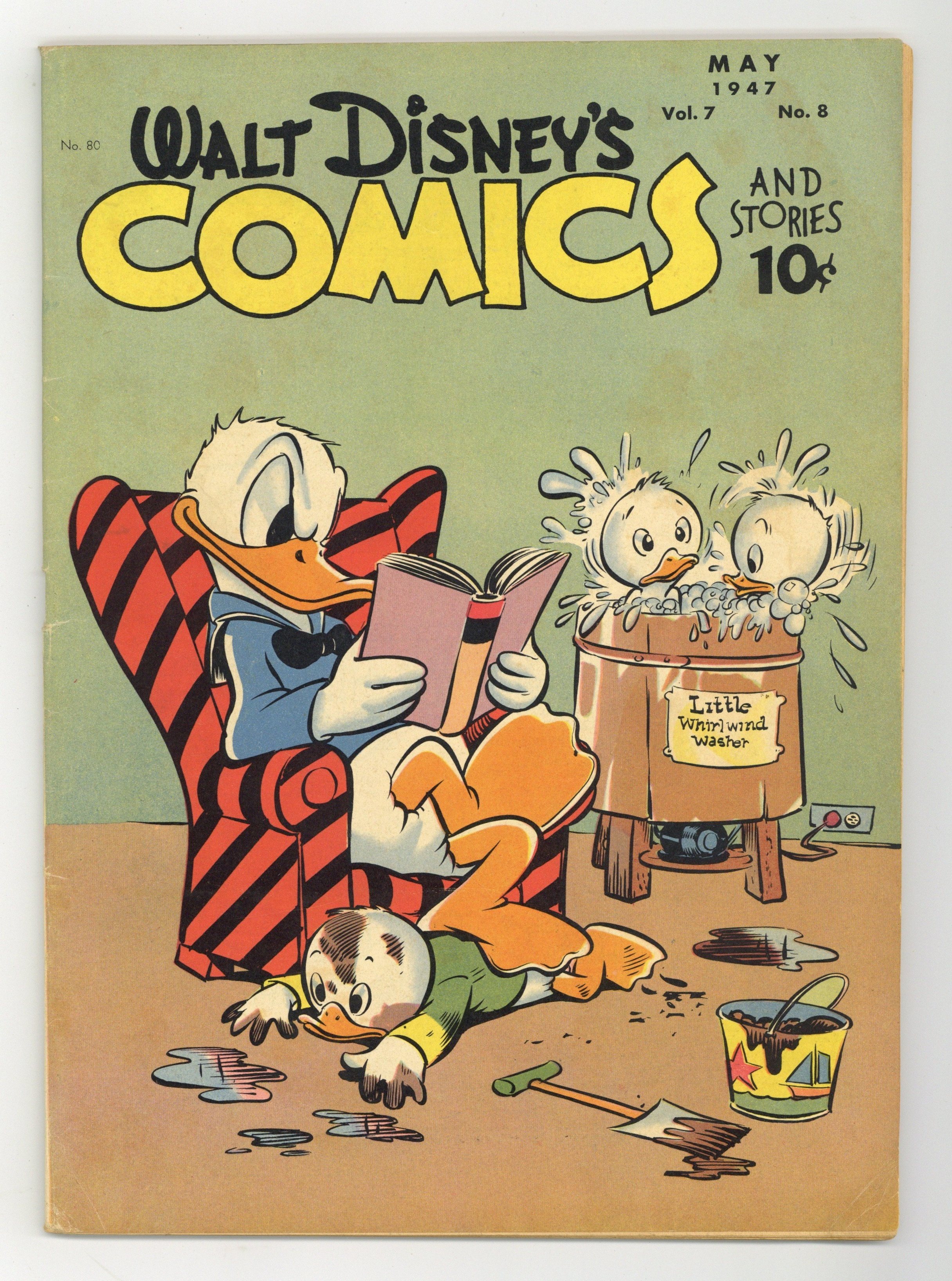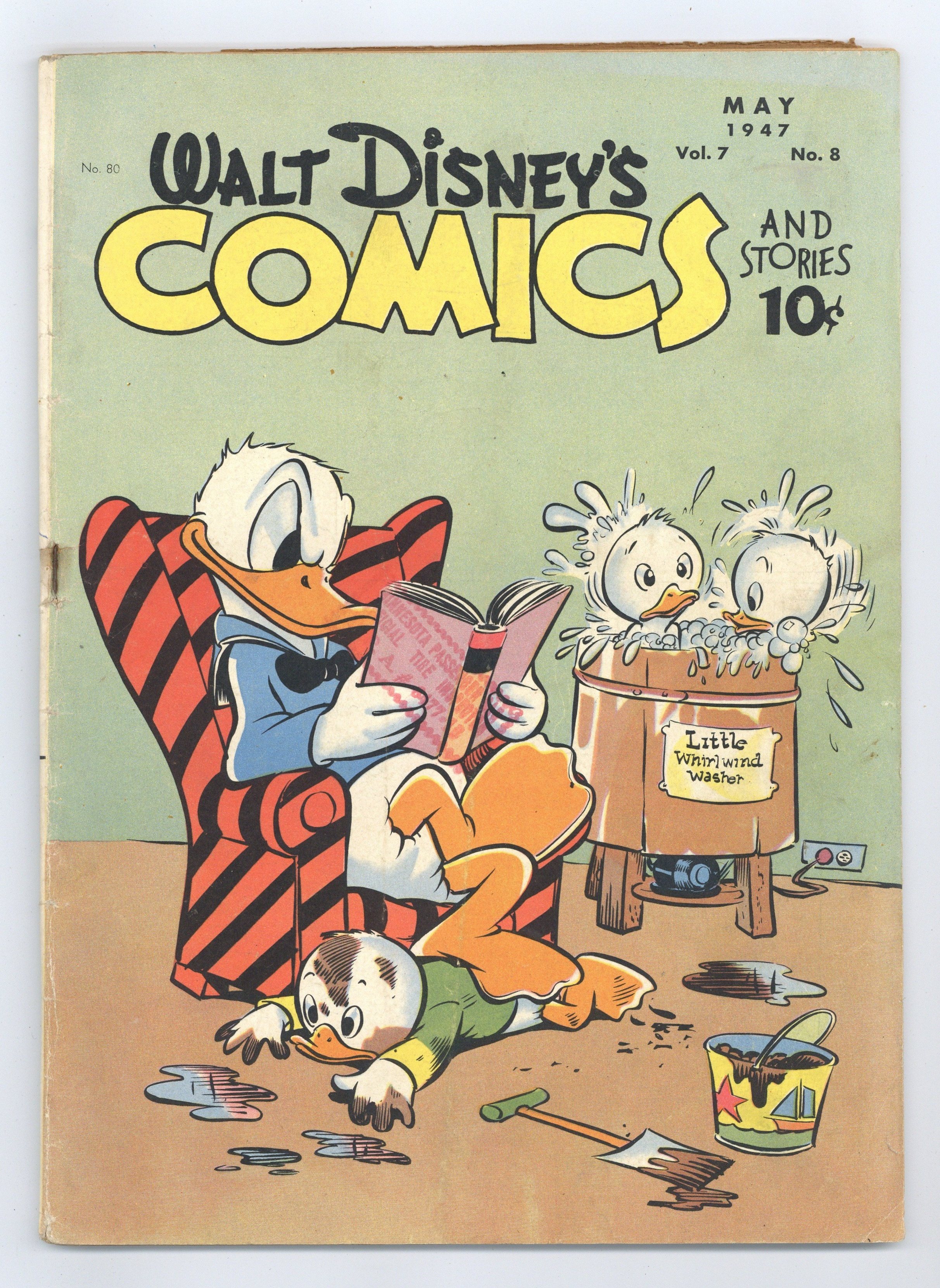 Stories and art by Carl Barks, Floyd Gottfredson, Bill Walsh, Dick Moores, Bob Karp, Hubie Karp, Paul Murry, George Waiss, Bill Wright, Sylvia Holland, and Al Taliaferro. Sometimes listed as Vol. 7 #8. The long-running vehicle for Disney character comics featured work by Carl Barks, Floyd Gottfredson, and Pogo's Walt Kelly. In a classic story from the Mickey Mouse comic strip, the ghost ship seemingly sends Mickey back in time, where pirate Captain Greatbeard looks exactly like Peg Leg Pete. In a story by Barks, Donald tries to get his nephews out of the yard so he can plant a prize-winning flower garden. A bizarre bird keeps ruining Donald's nature photos. Donald Duck; Bucky Bug; Li'l Bad Wolf; Mickey Mouse; Clown of the Jungle; Minnie's Mix-Up; Donald's Dilemma; Mickey Mouse: The Isle of Death. 48 pages, Full Color. Cover price $0.10.