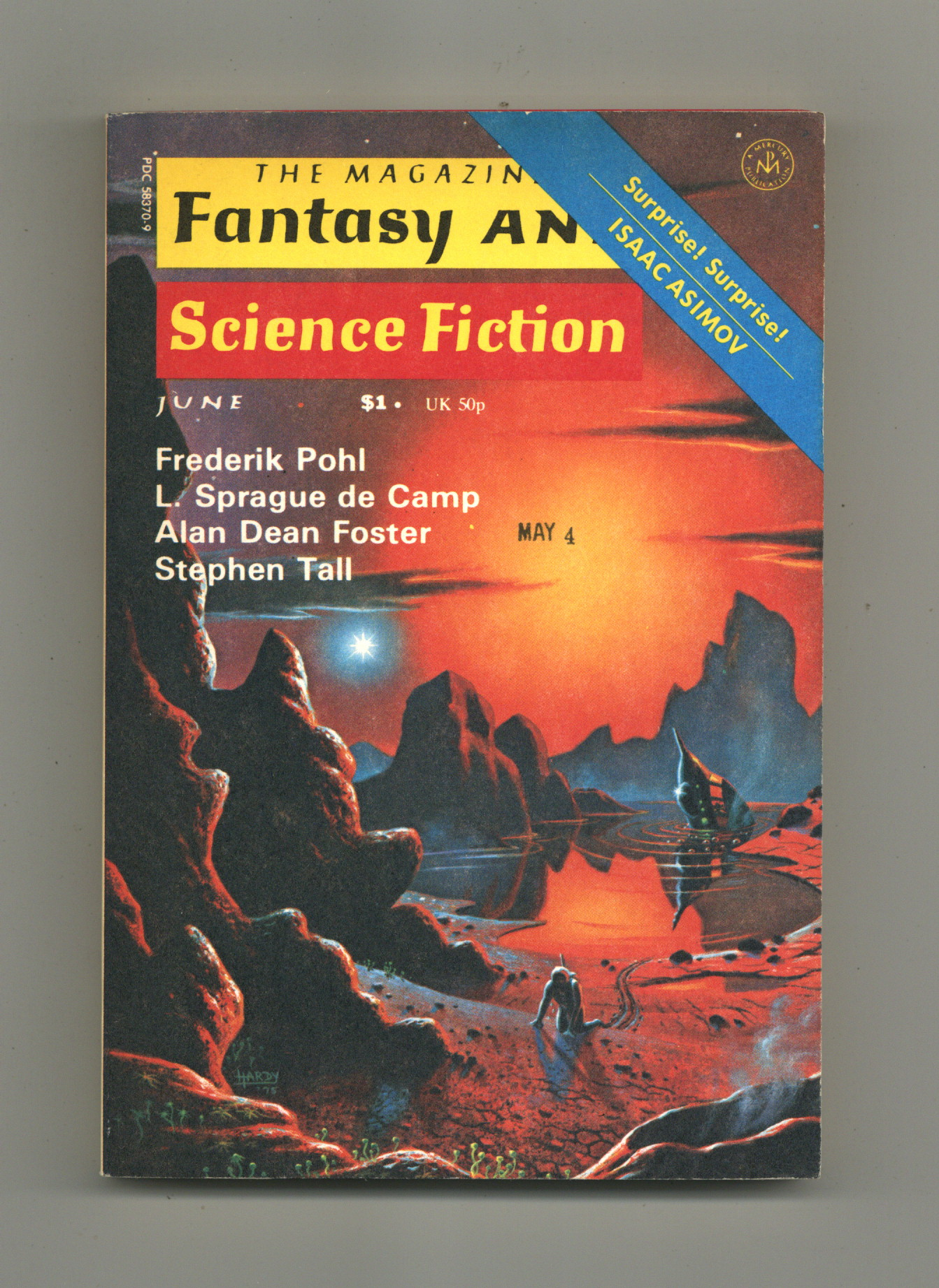 Published Jun 1976 by Mercury Publications.$90.00Volume 50, Issue 6 - June 1976. Cover by David Hardy. Fantasy and science fiction stories by Frederick Pohl, Stephen Tall, Robert F. Young, Alan Dean Foster, C.L. Grant, L. Sprague De Camp, and cartoons by the incomparable Gahan Wilson. 5 1/2-in. x 7 1/2-in., 162 pages, B&W Cover price $1.00.