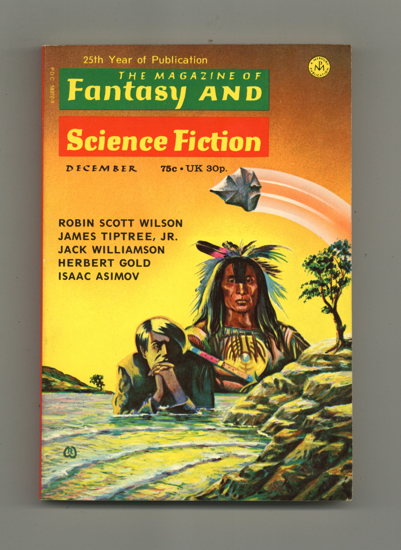 Published Dec 1973 by Mercury Publications.$28.00Volume 45, Issue 6 - December 1973. Cover by Ron Walotsky. Fantasy and science fiction stories by James Tiptree Jr., Jack Williamson, Herbert Gold, Richard A. Lupoff, Gary Jennings, C.G. Cobb, Doris Pitkin Buck, and Robin Scott Wilson. 5 1/2-in. x 7 1/2-in., 162 pages, B&W Cover price $0.75.