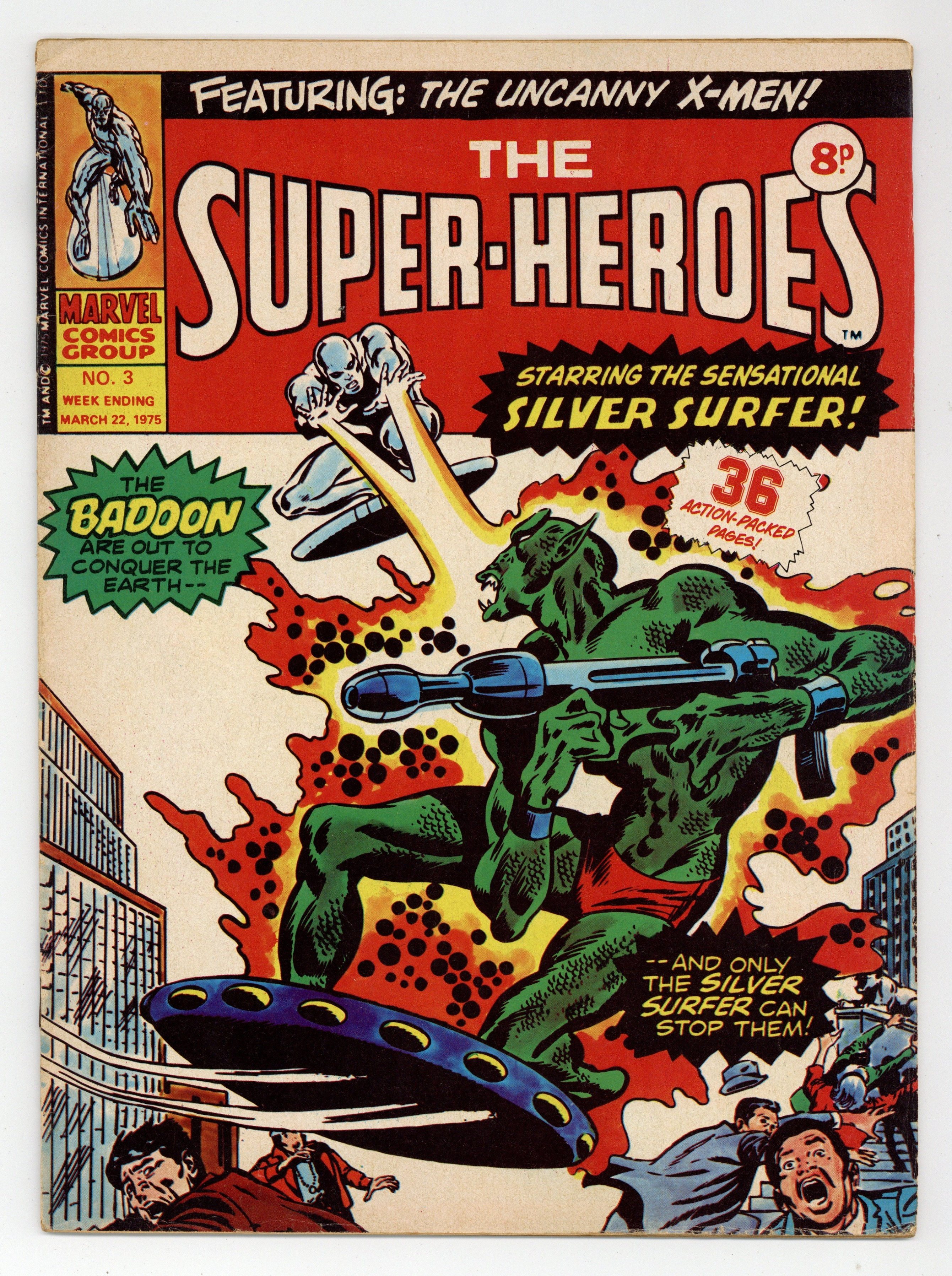 Tags: Silver Surfer$10.00March 22nd, 1975 - John Buscema Cover. Silver Surfer vs the Badoon! Written by Stan Lee. Art by John Buscema and Jack Kirby. UK Reprints of early Silver Surfer and X-Men issues. 8 1/4-in. x 11-in., 36 pages, B&W.