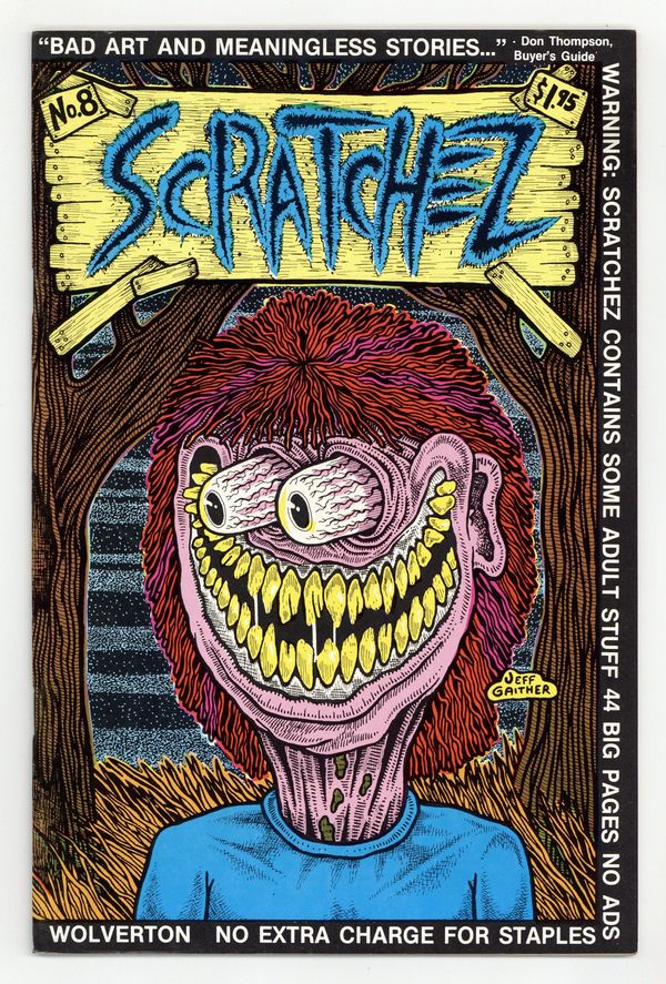 Tags: UndergroundPublished 1986 by Scratchez Magazine.$15.00Art and stories by Bob X, Susan Catherine, Ray Waters, XNO, Bob Lewis, Al Simons, Kathe Pritz, Hunter Jackson, Basil Wolverton, Steve Willis, Scott Stevens, Brad Foster, Charlie Roberts, Shel Dorf, Jeff Gaither, Pizz, John E., Carel Moiseiwitch, Scott Angle, R.L. Sloane, Mary Fleener and Bruce Sweeney. 44 pages, B&W. Mature readers. Cover price $1.95.