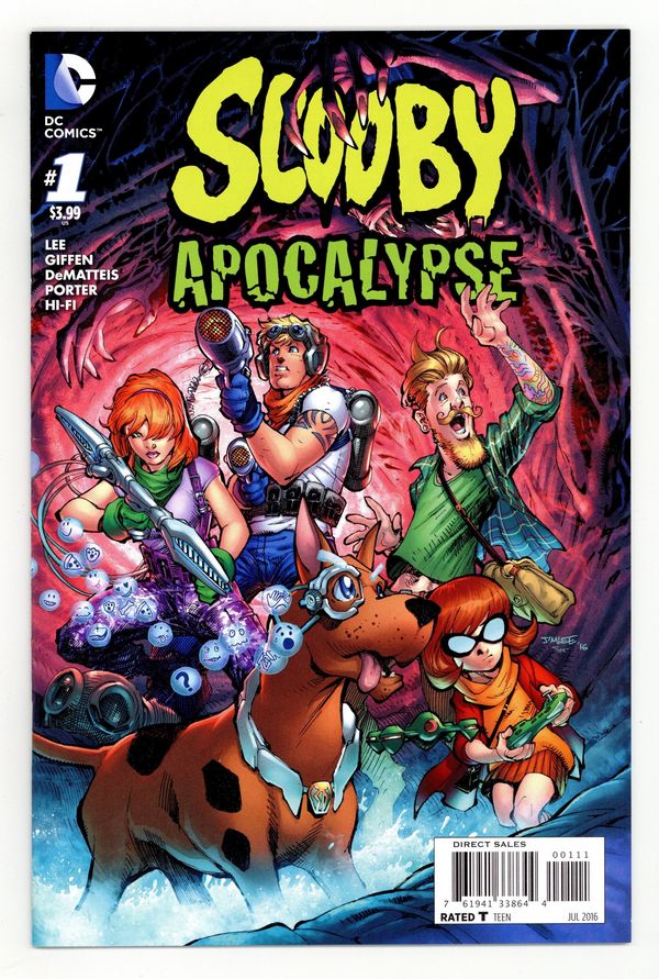 $21.50Written by Jim Lee, Keith Giffen and J.M. DeMatteis. Art by Hank Porter. Cover by Jim Lee. Those meddling kids-Fred, Daphne, Velma, Shaggy, and their dog, Scooby-Doo-get more ghost-debunking than they bargained for when faced with a fundamental change in their world. The apocalypse has happened. Old rules about logic no longer apply. The creatures of the night are among us, and the crew of the Magical Mystery Machine has to fight to survive-because in the apocalyptic badlands of the near-future, the horrors are real! This new monthly series takes Scooby and the gang to a whole new level and features character designs by comics superstar Jim Lee! 40 pages, full color, Rated T Cover price $3.99.