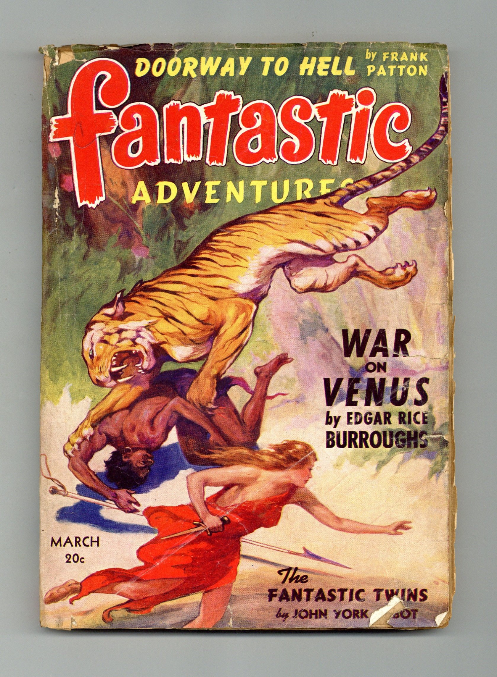 Volume 4, Issue 3 - March, 1942. Cover by J. Allen St. John. Science Fiction and Adventures stories. This issue features "War on Venus" by Edgar Rice Burroughs, "The Fantastic Twins" by John York Cabot, and a continuation of "Doorway to Hell" by Frank Patton. Softcover Pulp, 7-in x 10-in, 148 Pages, B&W. Cover price $0.20.