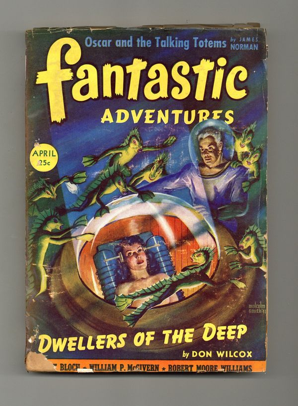 Volume 4, Issue 4 - April 1942. Cover by Malcolm Smith. Science Fiction and Adventures stories. This issue features "Oscar and the Talking Totems" by James Norman, "Dwellers of the Deep" by Don Wilcox, and stories by Robert Bloch, William P. McGivern, and Robert Moore Williams. Softcover Pulp, 7-in x 10-in, 244 Pages, B&W. Cover price $0.25.