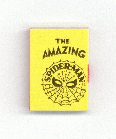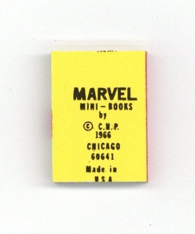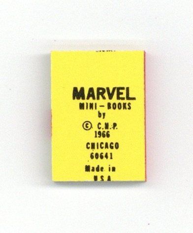 The Spider-Man Marvel Mini Book is one in a set of 6 released in 1966 via gumball vending machines. These are the smallest "comics" ever made, measuring just 5/8-in. x 7/8-in. with 50 black-and-white interior pages, and glossy covers (in various bright background colors). Whereas the Wham-O Giant Comics is the largest comics series ever produced (about full newspaper dimensions), this little Marvel Mini series of six represents the world's smallest comics set! The complete Marvel Mini Books series featured one book each for: Captain America, the Hulk, Millie the Model, Sgt. Fury, and Spider-Man, and Thor. Each title was released in six different colors (Blue, Green, Lime, Orange, Red and Yellow). NOTE: Way back in 1966, Buddy Saunders, Lone Star Comics/mycomicshop.com's owner bought several bags of these little gems. Over the years, he gave many away to customers who placed back issue orders, and sold others for $5 to $10 each as they grew scarce. Today, these tiny little comics are very difficult to find, but make a cool addition to any comics collection.