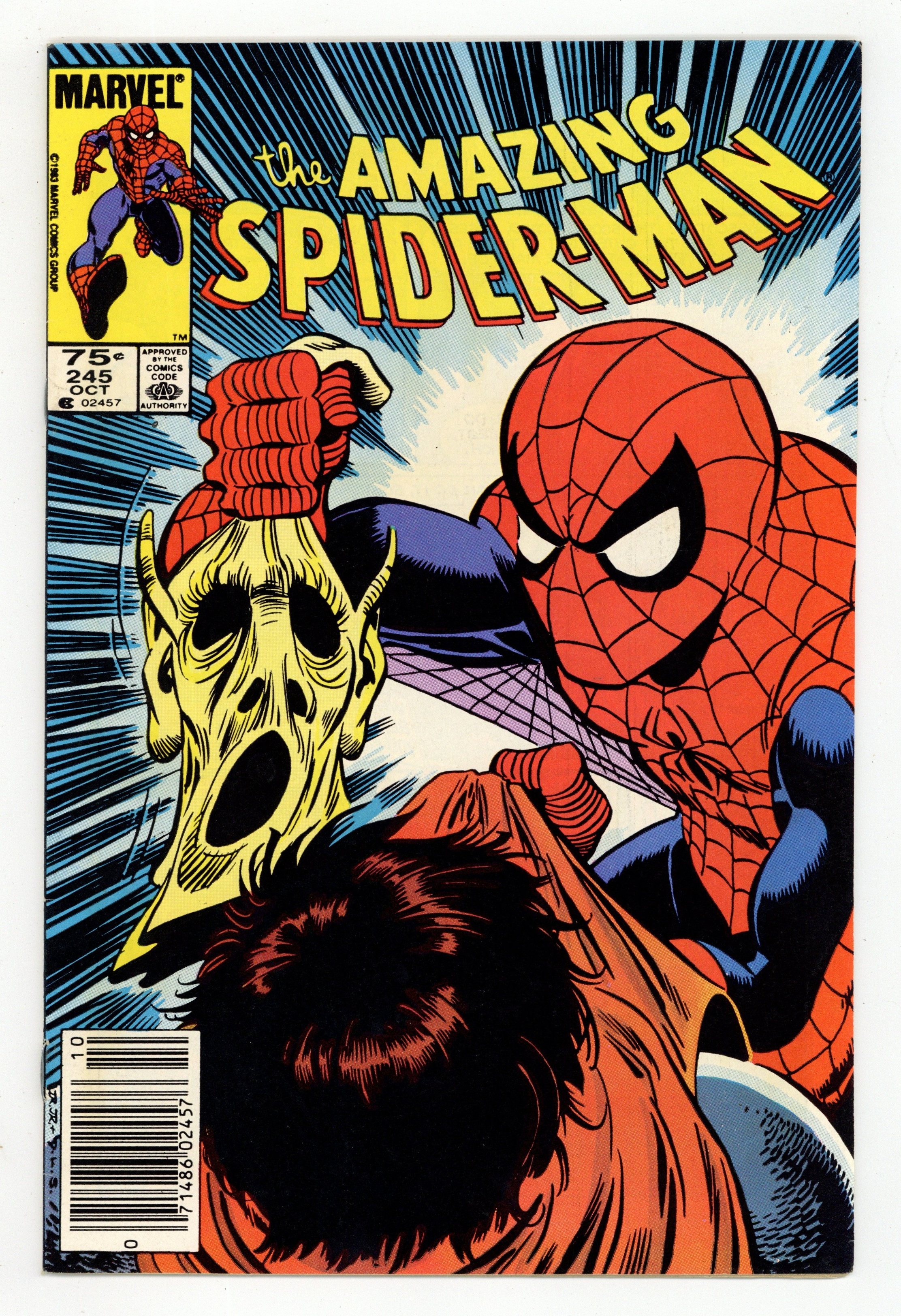 Tags: Canadian Price Variant, Spider-Man$17.00Canadian Edition with 75ยข Cover Price. "Sacrifice Play!" Part 2 of 2. Fourth appearance of the Hobgoblin. Script by Roger Stern. Art by John Romita Jr. (breakdowns) and Dave Simons (finishes). Cover by John Romita Jr. and Dave Simons. The wondrous wall-crawler thinks he knows who the Hobgoblin is! Lefty Donovan! Who? Apparently the evidence from the police points in Lefty's direction! So the web-slinger conducts a relentless search! And in the skies over Times Square, the Amazing Spider-Man and the (suddenly super-strong) Hobgoblin clash again! Will this battle solve the mystery of the goblin's identity? Or just add to the puzzle? Cameo appearances by Mary Jane Watson, Ned Leeds, and Betty Brant Leeds. (Note: The Hobgoblin appears next in Spectacular Spider-Man 85 -- a must read to keep up with the Hobgoblin's development.) Cover price $0.75.