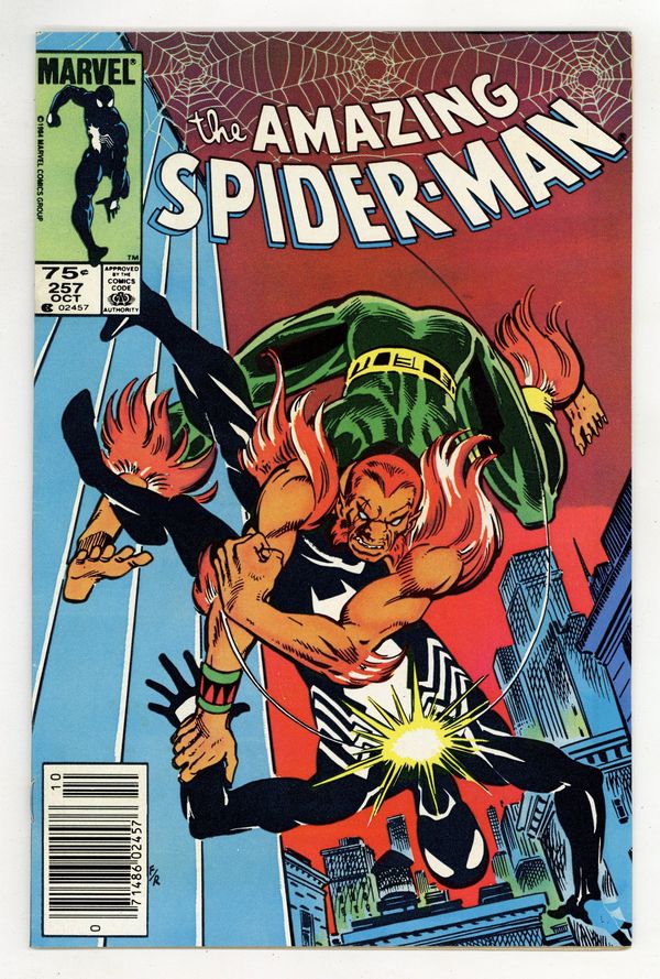 Tags: Canadian Price Variant, Spider-Man$36.00Canadian Edition with 75ยข Cover Price. "Beware the Claws of Puma!" Part 2 of 2. Script by Tom DeFalco. Pencils by Ron Frenz. Inks by Joe Rubinstein. Cover by Ron Frenz and Joe Rubinstein. On a Manhattan rooftop, Puma lines up the wounded wall-crawler for the kill shot, but the Black Cat intervenes at the last possible moment! With a brilliant display of her powers, the cat fights off Puma! And helps the web-slinger limp back to his apartment! After Felicia leaves Peter's pad, Mary Jane walks through the door! And then Puma smashes through the window! Wow, how is Peter going to save Mary Jane much less himself from the wrath of Puma? And so much for the whole secret identity bit! Everything is coming apart at the seams for your friendly neighborhood Spider-Man (including his new costume)! Cameo appearances by the Rose, Kingpin, and Arranger. (Note: In this issue Mary Jane tells Peter that she knows...he is the Amazing Spider-Man.) Cover price $0.75.