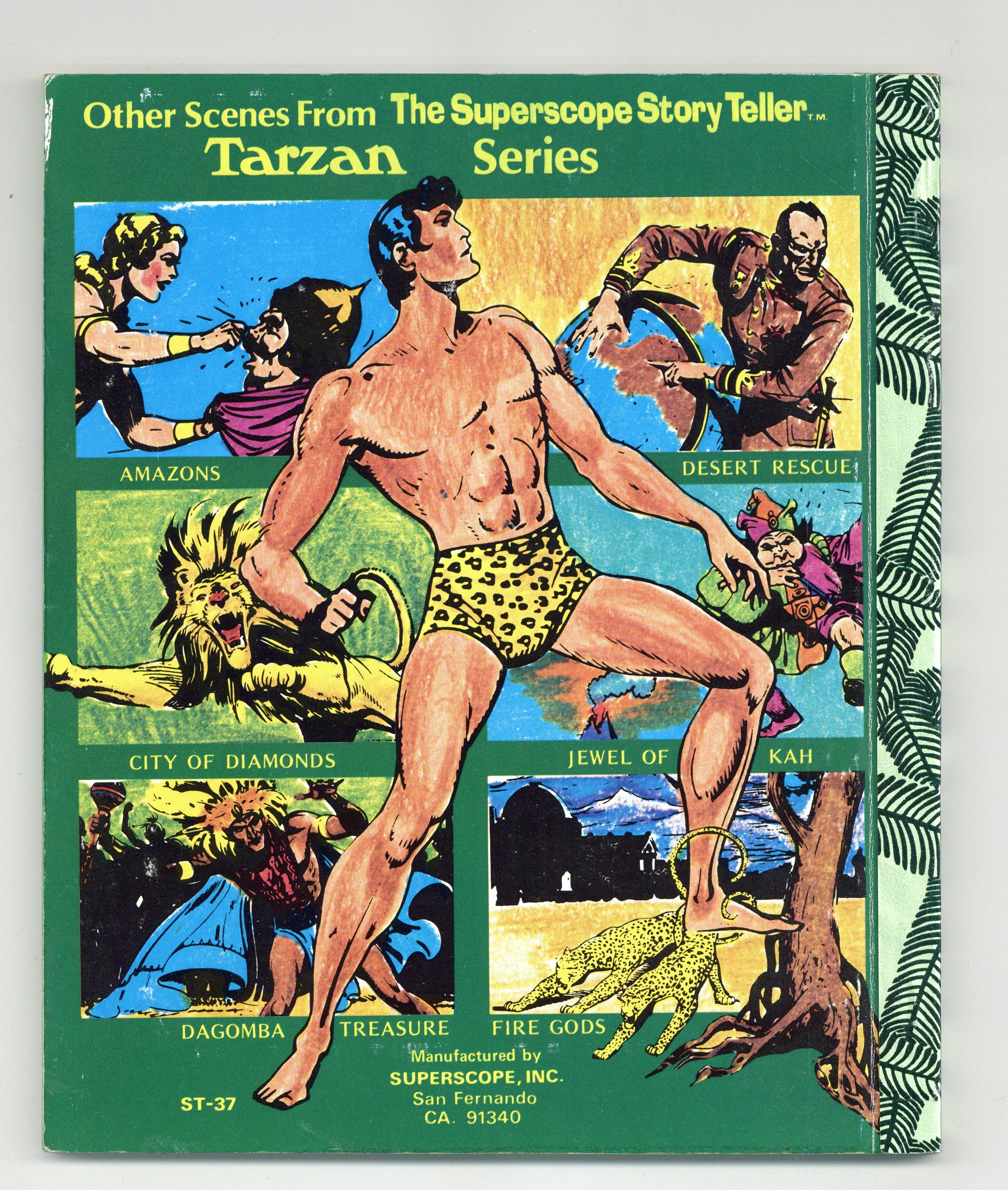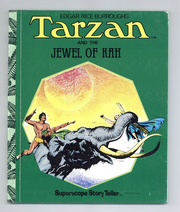 Tags: Illustrated BookPublished 1977 by Superscope Inc..$5.20Does NOT include Cassette Tape - "Tarzan and the Jewels of Kah!" Written by Jeff Skelley and Paul Stein. Art and Cover by Burne Hogarth. Hardcover, 6 1/2-in. x 8-in, 36 pages, full color.