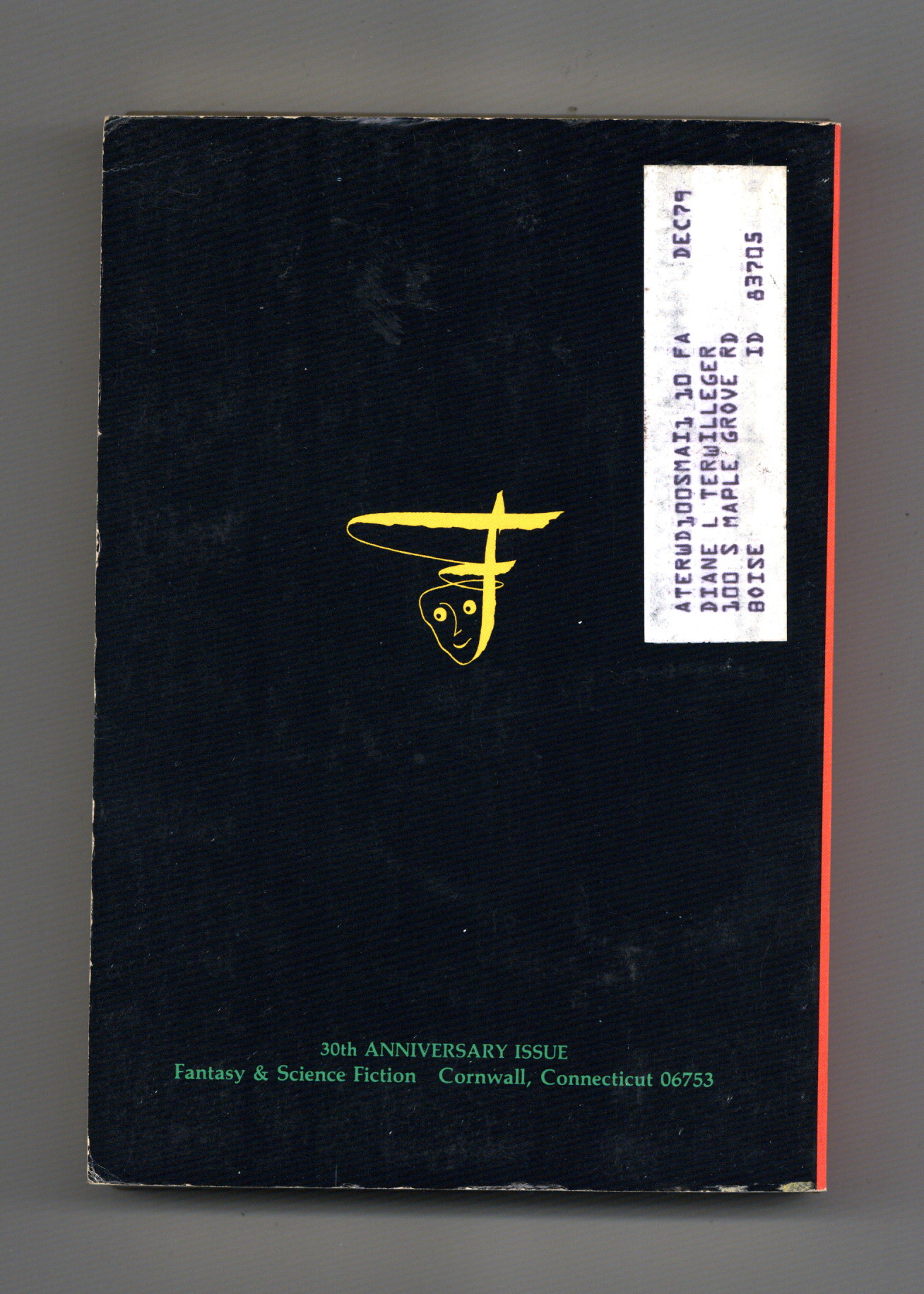 Volume 57, Issue 4 - October 1979. 30th Anniversary Issue. Cover by Tom Bevans. Fantasy and science fiction stories by Isaac Awsimov, Alfred Bester, Anthony Boucher, R. Bretnor, Avram Davidson, Philip K. Dick, Thomas M. Disch, Harlan Ellison, Robert A. Heinlein, Zenna Henderson, Shirley Jackson, Daniel Keyes, Damon Knight, Richard Matheson, Walter M. Miller Jr., Robert Silverburg, Theodore Sturgeon, Jame Tiptree Jr, and Brian W. Aldiss. 5 1/2-in. x 7 1/2-in., 162 pages, B&W Cover price $1.25.