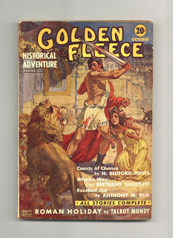 Volume 1, Issue 1 - October, 1938. Pulp magazine focusing on historical adventures. This issue features "Coasts of CHance" by H. Bedford-Jones, "Whales Way" by Bertrand Shurtleff, and "Rosebud Joe" by Anthony. Rud. 6.5" x 9.5", 130 pages, B&W. Cover price $0.20.