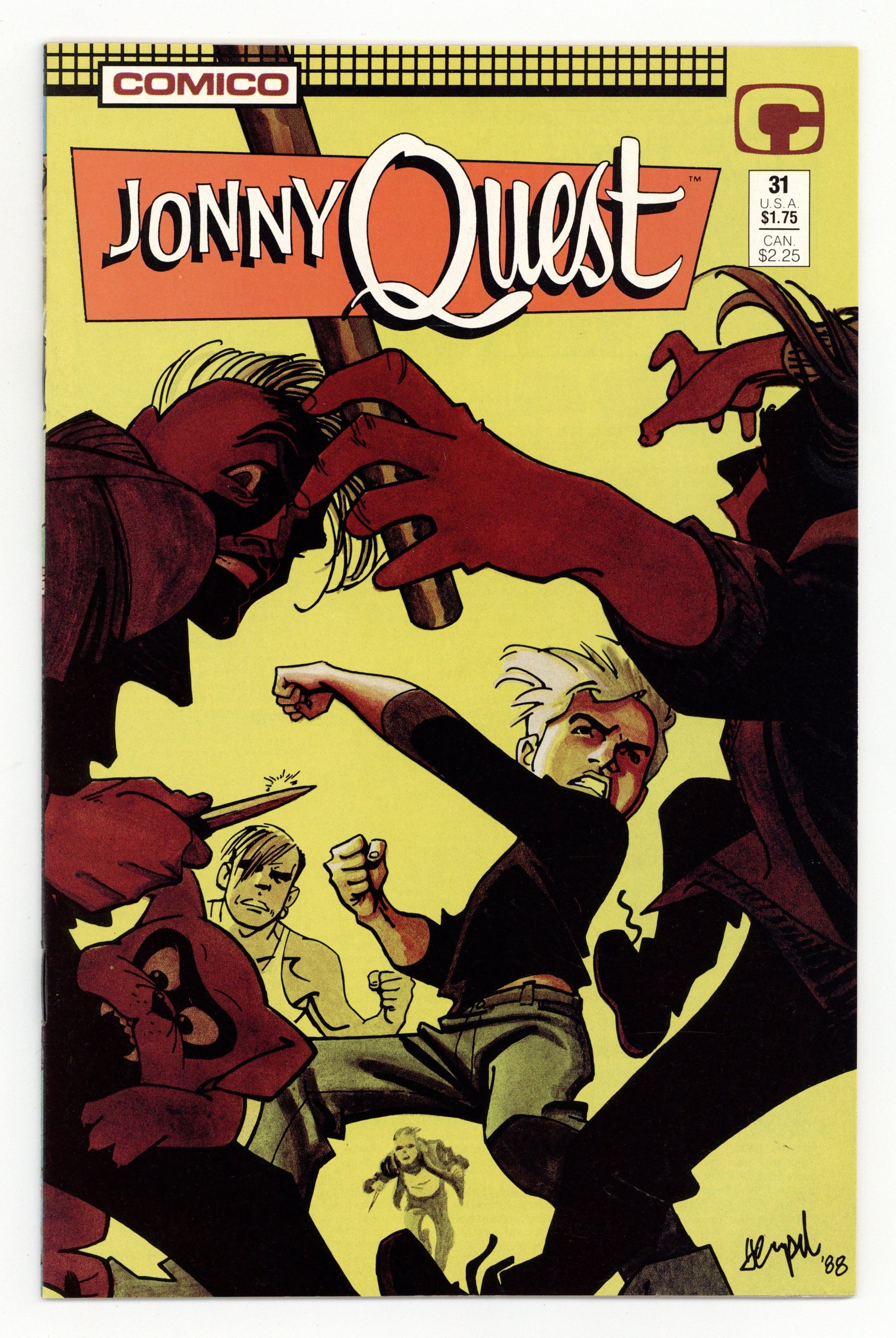 Social Work. Story by William Messner-Loebs. Art by Marc Hempel and Mark Wheatley. Cover by Marc Hempel and Mark Wheatley. An adaptation of the beloved cartoon series from Now Comics. Jonny Quest and Hadji follow Kathy Martin to see what a typical day is like for her. Final issue of the series. 32 pages, Full Color. Cover price $1.75.