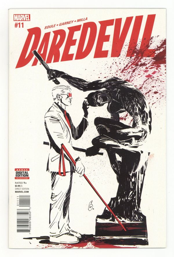 The Dark Art: Part 2 of 5 - Written by Charles Soule. Art and Cover by Ron Garney. THE CREEPIEST DD STORY OF THE CENTURY, 'DARK ARTS' CONTINUES! A serial killer who turns his victims into works of art is on the loose. Can DAREDEVIL and BLINDSPOT stop him before he reveals his next 'masterpiece'? 36 pages, full color. Rated T+ Cover price $3.99.