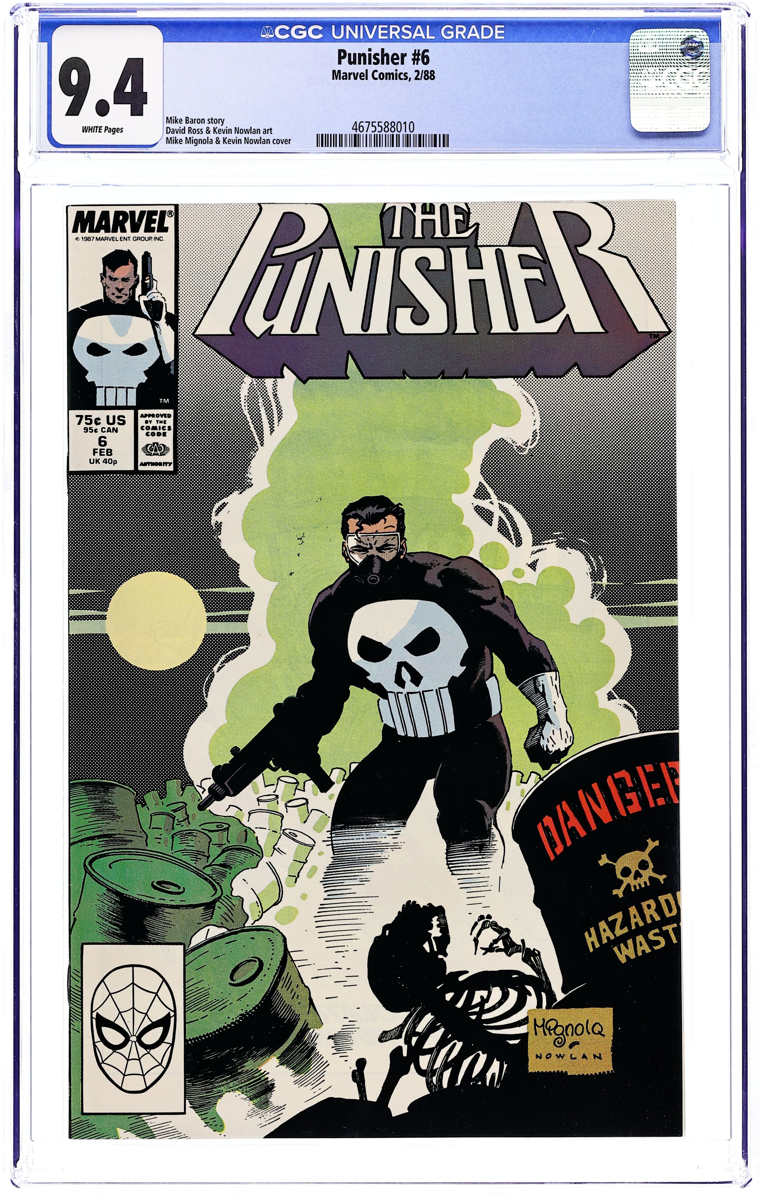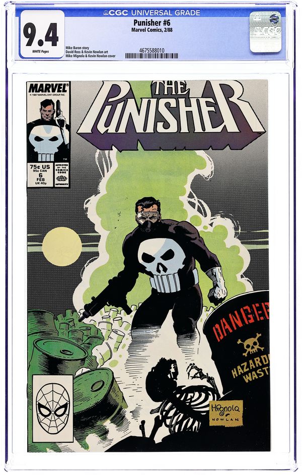Punisher vs. terrorists. Part 1 of 2. Story by Mike Baron. Art by David Ross and Kevin Nowlan. Cover by Mike Mignola. Frank is awakened by muffled gunshots and discovers a murder scene. This sets him on the trail of arms dealers. But what he finds is even more disturbing. Arabs are purchasing plutonium to make a bomb for an act of terrorism some where on United States soil. Continues in next issue. 32 pages. Cover price $0.75.