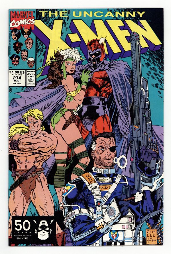 Direct Edition. "Capital Crimes!" Part 1 of 4. Guest-starring Nick Fury and Ka-Zar. Story by Chris Claremont. Art and cover by Jim Lee and Scott Williams. It's an epic battle is being waged in the Savage Land and the future of mankind may rest in the hands of...Magneto?! Meanwhile, the X-Men have arrived on the far side of the universe only to have blundered into the trap of an old and dangerous adversary. 36 pgs. Cover price $1.00.