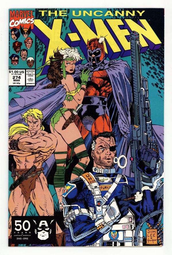 Starts Feb 2 Direct Edition. "Capital Crimes!" Part 1 of 4. Guest-starring Nick Fury and Ka-Zar. Story by Chris Claremont. Art and cover by Jim Lee and Scott Williams. It's an epic battle is being waged in the Savage Land and the future of mankind may rest in the hands of...Magneto?! Meanwhile, the X-Men have arrived on the far side of the universe only to have blundered into the trap of an old and dangerous adversary. 36 pgs. Cover price $1.00.