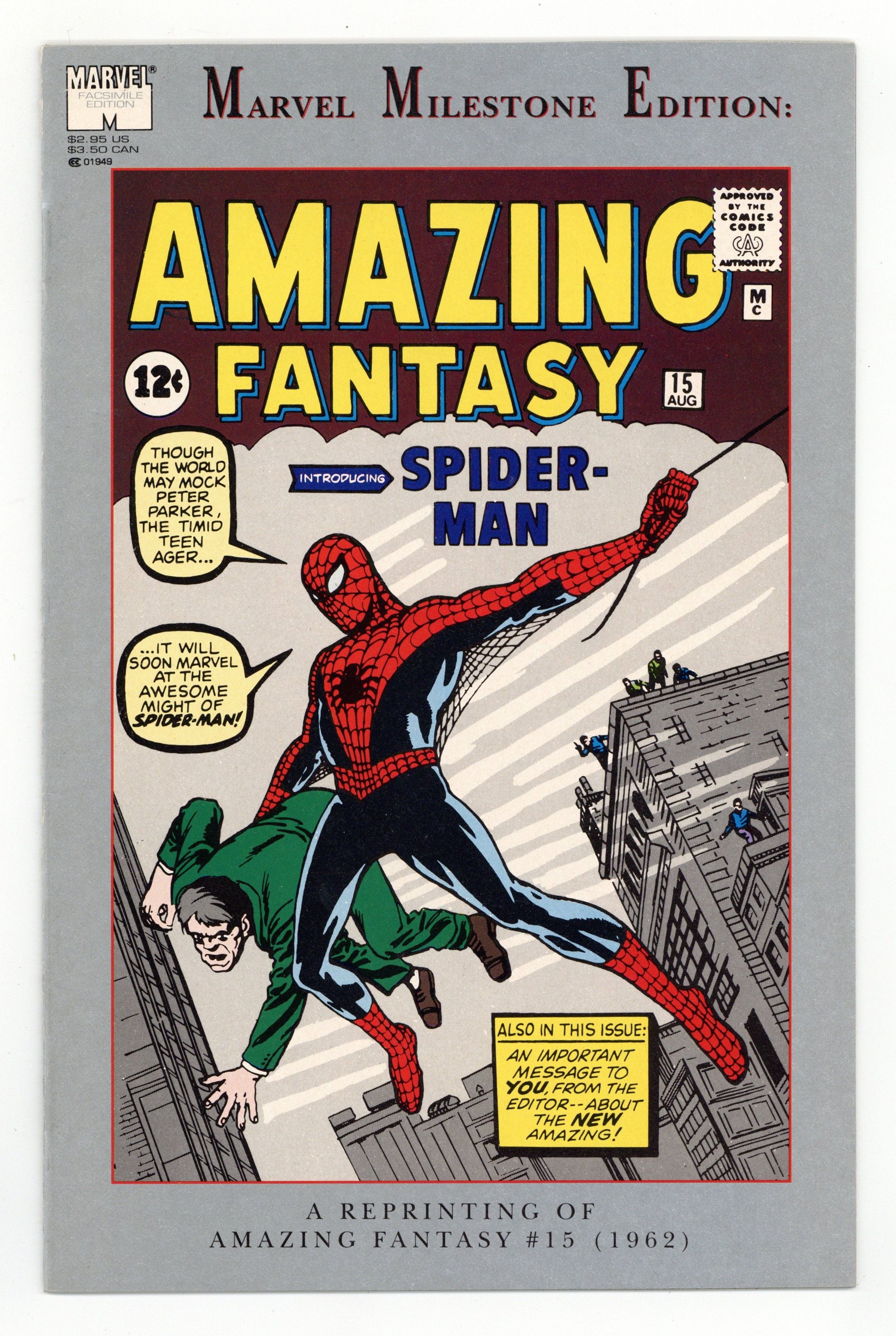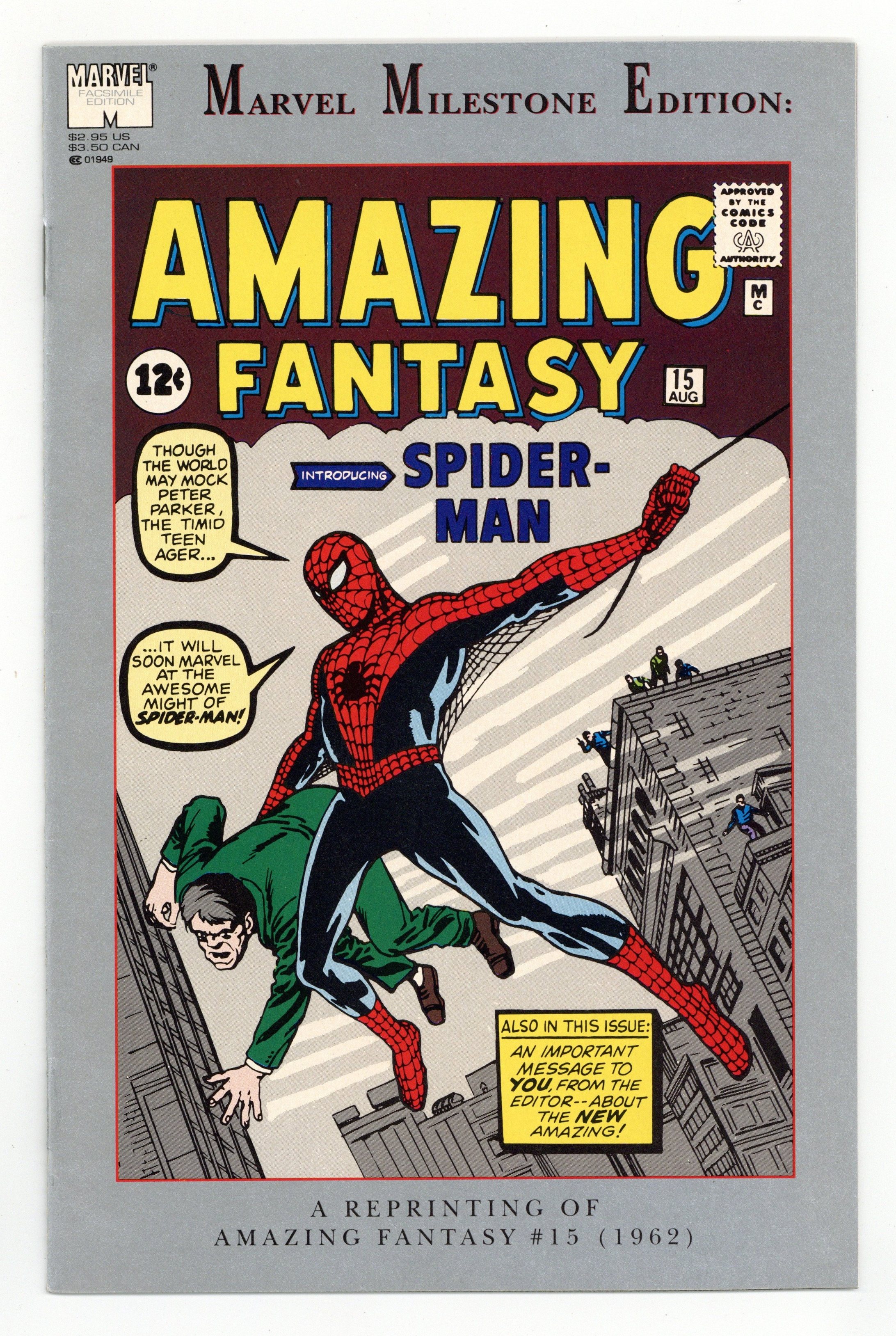 Reprints Amazing Fantasy 15 by Steve Ditko (1st Spider-Man) Cover price $2.95.