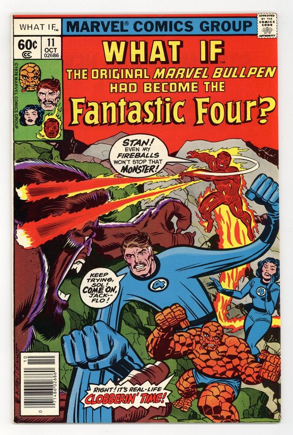$10.00"What If the Fantastic Four Were the Original Marvel Bullpen?" Script and pencils by Jack Kirby, inks by Mike Royer. Stan Lee becomes Mr. Fantastic, Sol Brodsky the Human Torch, Jack Kirby the Thing, and Flo Steinberg the Invisible Girl. Co-starring the Sub-Mariner. Kirby/Joe Sinnott cover. 52 pgs. Cover price $0.60.