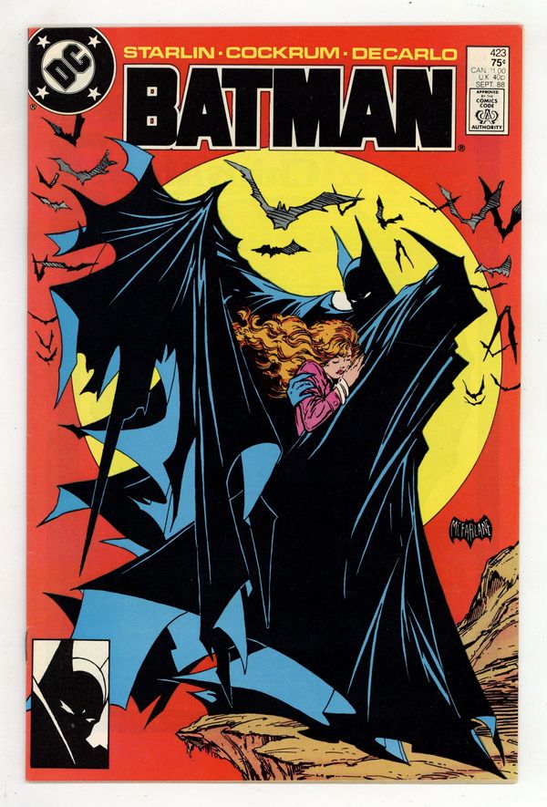 1st Printing. Direct Edition. Three cops relate three tales of the Dark Knight, revealing different facets of Batman's character, in "You Shoulda Seen Him..." Script by Jim Starlin, pencils by Dave Cockrum, inks by Mike DeCarlo. Todd McFarlane cover. 1st printing. NOTE: Most issues from 397-432 were reprinted in 1989 and sold in multipacks. These 2nd and 3rd prints have back cover ads dated 1989. 36 Pages, Full Color. Cover price $0.75.