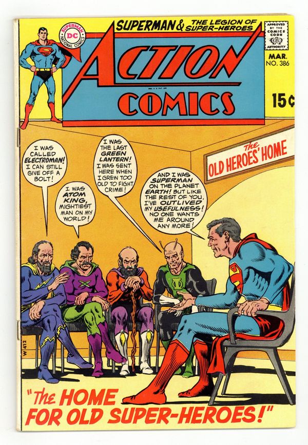 Cover pencils by Curt Swan, inks by Murphy Anderson. "The Home for Old Super-Heroes!", script by Cary Bates, pencils by Curt Swan, inks by George Roussos; The Time-Trapper's plot against Superman has sealed off his own time period, and he can only travel forward through time; In the year 122,470, he learns that super-powers are prohibited by law. Supergirl ad. The Flash ad. Tales of the Legion of Super-Heroes back-up, "Zap Goes the Legion!", script by E. Nelson Bridwell, pencils by Win Mortimer, inks by Jack Abel; Released ex-con Uli Algor has a defense for every super-power the Legion has, but none for a good old-fashioned uppercut. Statement of ownership - average print run 673,000; average paid circulation 377,535. 36 Pages, Full Color. Cover price $0.15.