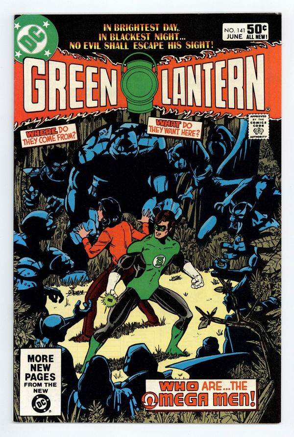 Direct Edition. 1st appearance of Omega Men. "The Lurkers in the Shadow." While vacationing in Canada, Green Lantern and Carol Ferris are captured by the Omega Men, who make their first appearance. Script by Marv Wolfman, art by Joe Staton. Cover by George Pérez. Cover price $0.50.