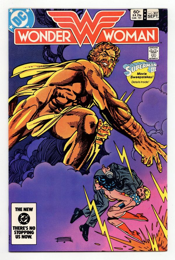 Tags: Wonder Woman$24.00Cover by Gil Kane. "Vulcan's Daggers!", script by Dan Mishkin, pencils by Don Heck, inks by Sal Trapani; Aegeus returns with new benefactors - a god who provides new Olympian artifacts, and a politician attempting to influence US-Soviet relations. "Side Effects," script by Joey Cavalieri, pencils by Michael Bair (as Michael Hernandez), inks by Frank Giacoia; Injected with a powerful hallucinogenic, the Huntress confronts her fears - the insurmountable legacy of her father, and the dark side of her mother; Cameos by Batman, Catwoman, the Joker, and - yes - Marvel's Doctor Strange! 36 pages, Full Color. Cover price $0.60.