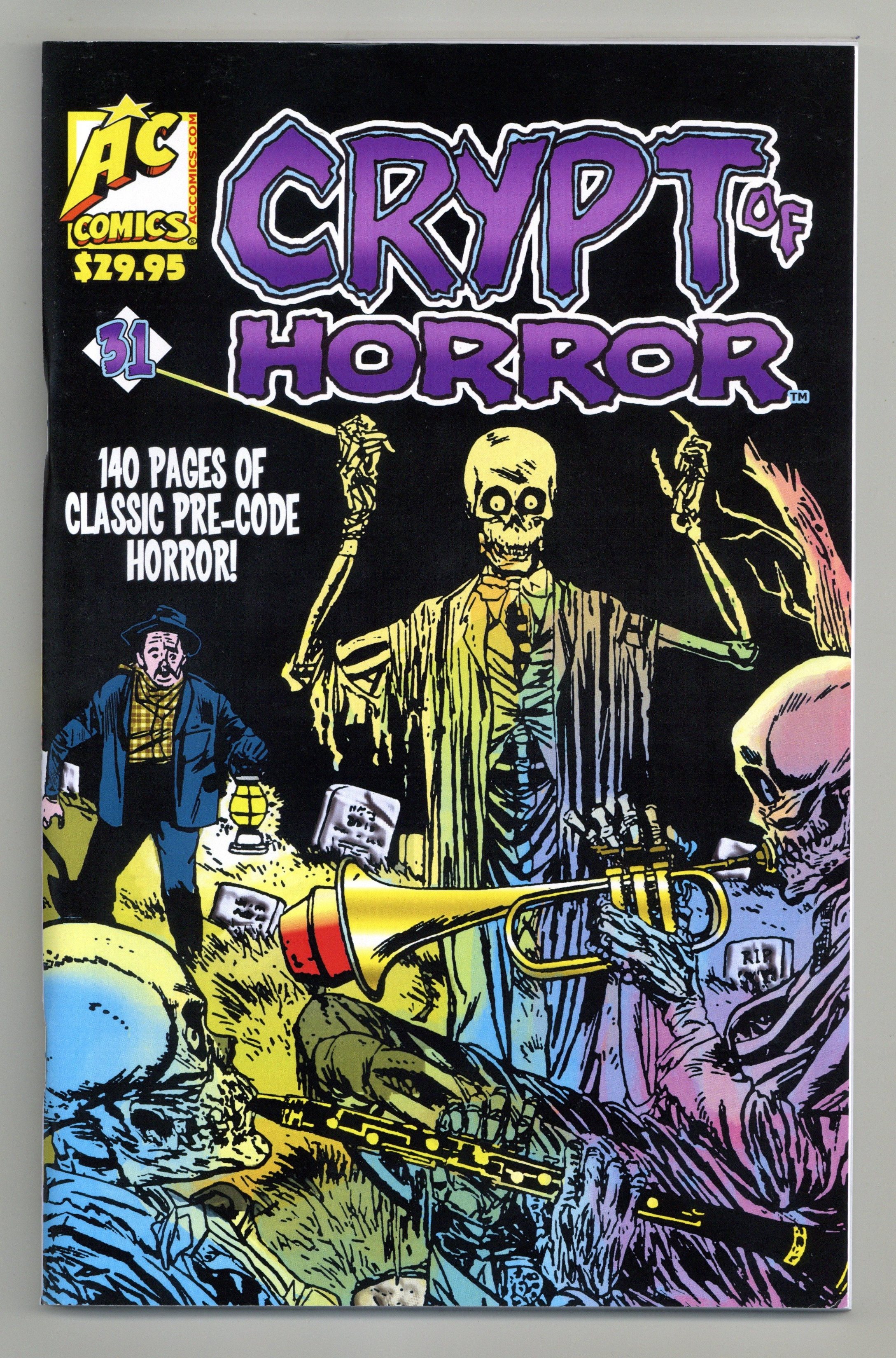 Volume 31 - 1st printing. Cover by Mike Sekowsky. Yet another 21 complete, never-before-reprinted Pre-Code horror gems from 1950s publishers Fawcett, Star, and others, including "The Unseen," "Reign of Terror," "The Ghoul Strikes," "The Forbidden Tomb," "Lost in the Graveyard," and 16 others. Artists include Bob Pwell, Mort Meskin, Sheldon Moldoff, L.B. Cole, Steve Ditko, Ed McCarty, Joe Menelley, Joe Orlando, Dick Giordano, and many others! Softcover (Saddle-Stitched/Stapled), 140 pages, B&W. Cover price $29.95.