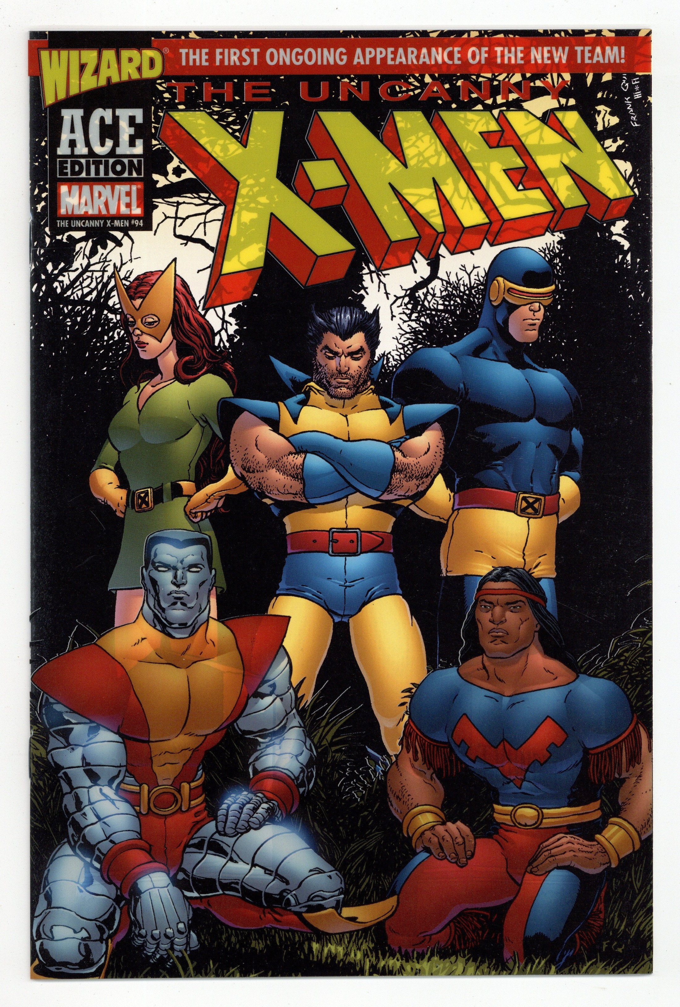 Tags: Wizard Ace Edition$25.00An ACE Edition reprint from Wizard of Uncanny X-Men (1963 1st Series) #94. Features a clear cel cover overlay. Written by Len Wein and Chris Claremont. Art by Dave Cockrum and Bob McLeod. Cover by Frank Quitely. Wizard ACE Editions are back with another one of the most requested Marvel comics that fans have asked to get an ACE of! Featuring the very first ongoing appearance of the all-new X-Men by Len Wein, Chris Claremont, Dave Cockrum and Bob McLeod. Artist Frank Quitely illustrates a dramatic, all-new 2-part acetate cover featuring Wolverine, Cyclops, Colossus, Jean Grey and Thunderbird. Full color. Cover price $12.95.