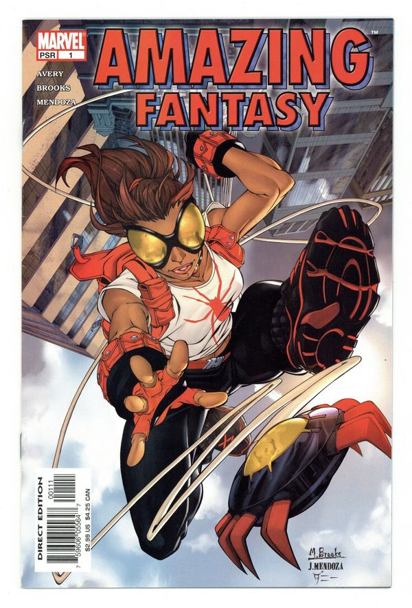 Written by FIONA AVERY Pencils & Cover by MARK BROOKS She's fierce, she's sassy... she sticks to walls! AMAZING FANTASY #1 is where it all begins: Meet an all-new, all-different heroine! Fiona Avery (AMAZING SPIDER-MAN) and Mark Brooks (MARVEL AGE SPIDER-MAN) launch a surprising series of teen- friendly adventures set in the current Marvel Universe! 32 PGS./MARVEL P Cover price $2.99.