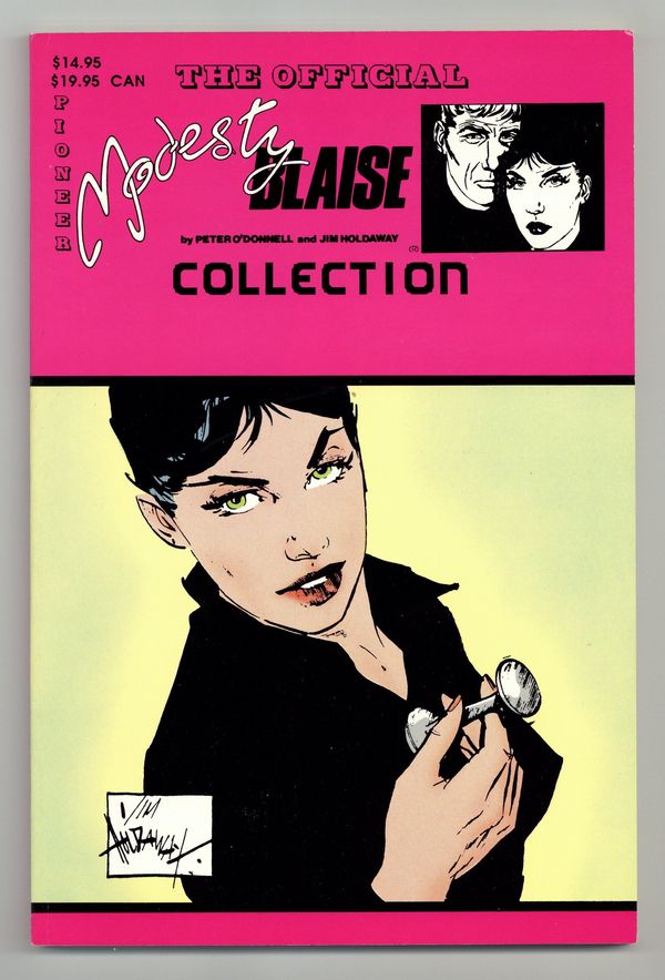 $16.00Story by Peter O'Donnell. Art and cover by Jim Holdaway. Adventures of the legendary femme fatale crimefighter, a celebrated British comic strip character. Reprints Modesty Blaise dailies from late 1963. Retired super-criminal Modesty and her right-hand man Willie Garvin are bored, and ready for more adventure. Sir Gerald Tarrant offers that, and a chance to make up for past sins, when he recruits them for an international spy network. Modesty and Willie are called in by Sir Gerald after a scientist and Soviet defector vanishes from a Rio de Janeiro hotel. La Machine; The Long Lever. 96 pages, B&W. Cover price $14.95.