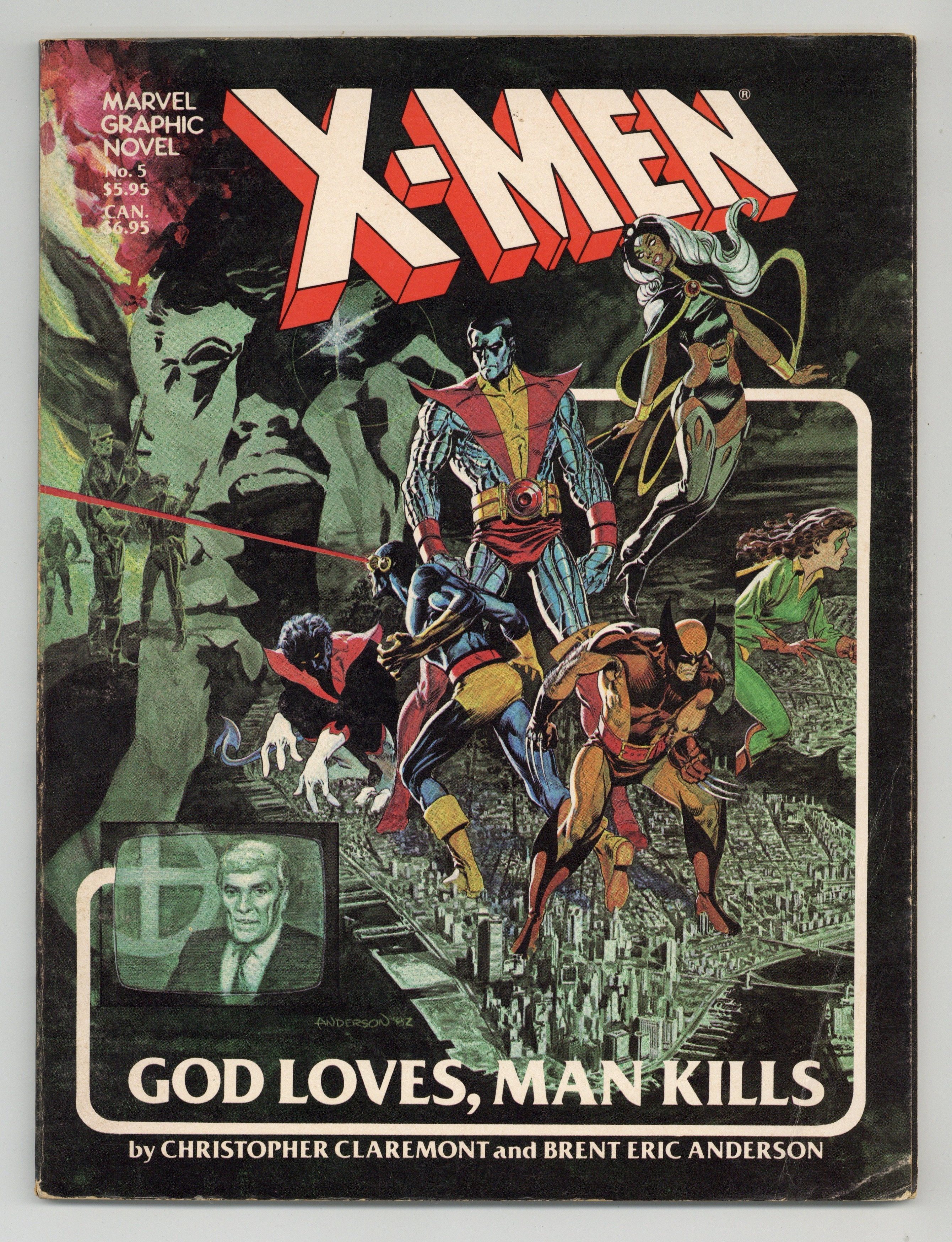 Tags: Marvel Graphic Novel Series (1982-1992) (part 5), X-Men$22.50Marvel Graphic Novel Volume 5 - 2nd and later printings. NOTE: Covers on reprints may vary. Written by Chris Claremont. Cover and art by Brent Anderson. Considered by many to be THE preeminent X-Men story, this tale features the outlaw mutant heroes' battle against the fear and hatred of the anti-mutant movement. Softcover, 64 pages, 8 1/4-in. x 11-in., full color. NOTE: This is the monumental X-Men tale that inspired the X2 movie! Cover price $8.95.
