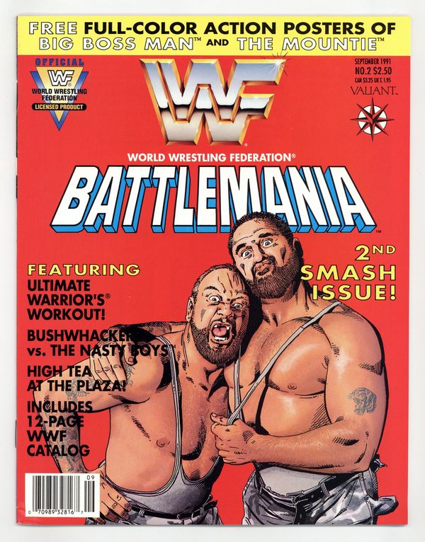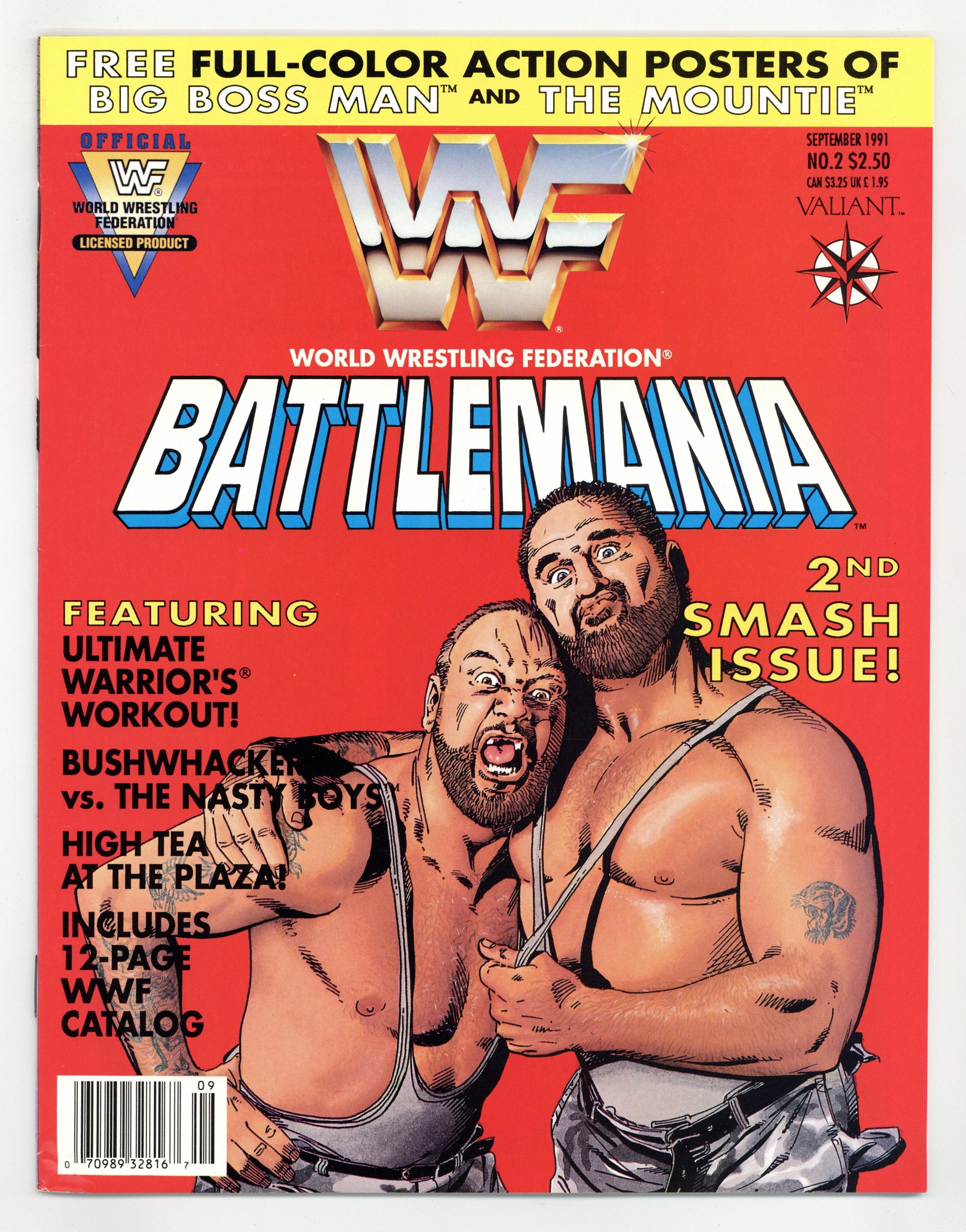 With free poster insert. "Dangerous Secret," script by Lynn Charles, pencils by David Lapham, inks Stan Drake; Sherri Martel tries to undermine the workout of Randy Savage for the Ultimate Warrior. "Victory At Tea," script by Bill Taylor, pencils by Steve Ditko, inks by Paul Credick; Luke and Butch, collectively known as The Bushwhackers, encounter Brian Knobbs and Jerry Saggs of the Nasty Boys at a formal banquet; The banquet devolves into a brawl. With free poster insert. 60 pgs., full color. Cover price $2.50.