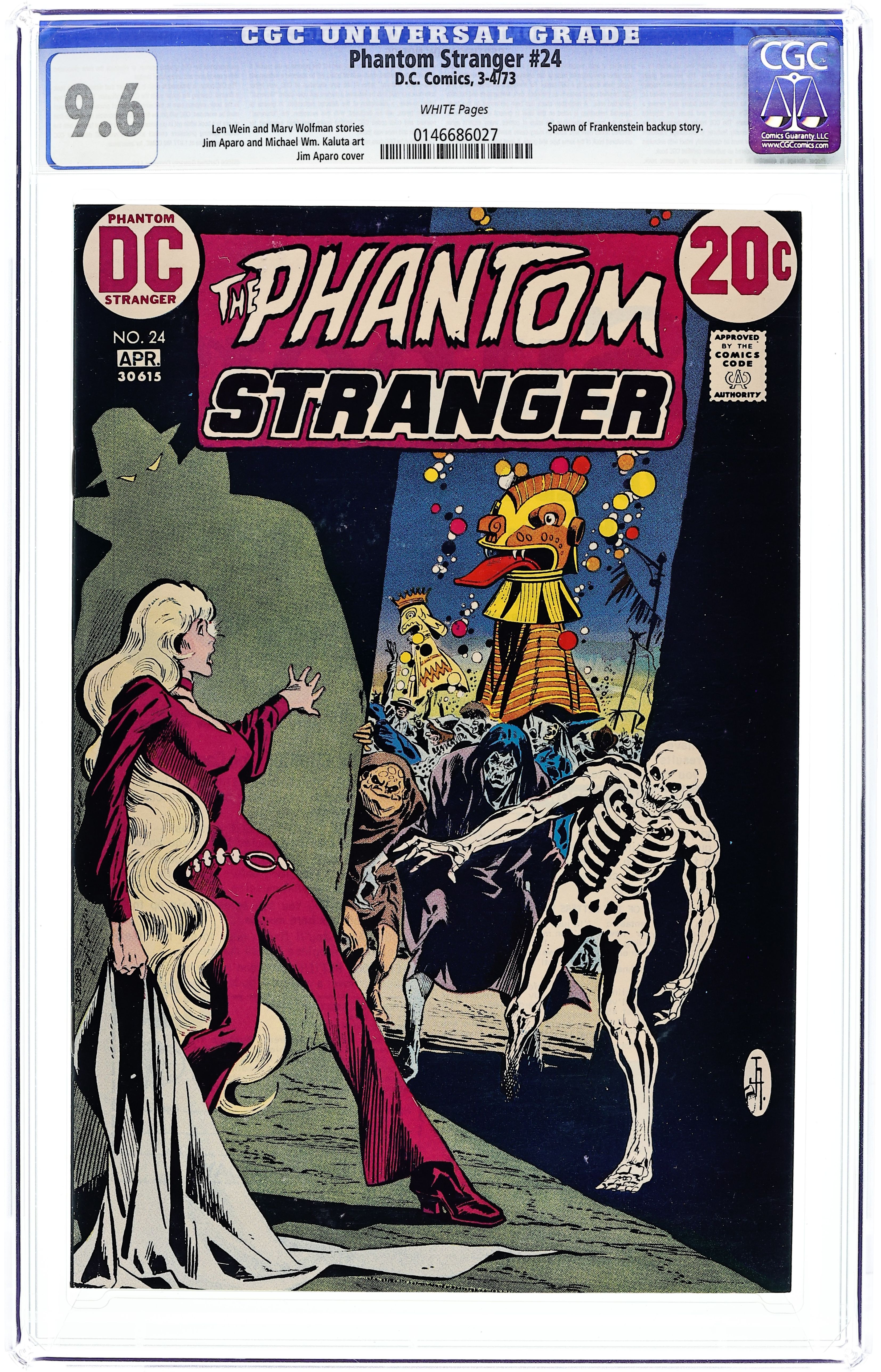 Cover art by Jim Aparo. "Apocalypse," script by Len Wein, art by Jim Aparo; Phantom Stranger, Cassandra Craft, and Tannarak investigate the Paris hideout of the Dark Circle; After some work they locate their headquarters where they learn that they are lead by Tala who hopes to bring forth the Four Horsemen of the Apocalypse and bring about chaos, death and destruction; During the battle, Tannarak attacks Tala directly, knocking both into a fissure in the cavern which swallows them up. "The Spawn of Frankenstein" Part 2, script by Marv Wolfman, art by Michael Kaluta; Following the funeral of Victor Adams, Dr. Thirteen vows to track down and destroy the Spawn of Frankenstein; The monster itself however, after dressing itself with a cape and hat, goes to the cemetery where Victor's body will be buried, the Monster attacks everyone in his path to collecting what he wants: Victor Adam's body. Letter to the editor from comics writer Mike Barr. 36 pgs., full color. Cover price $0.20.