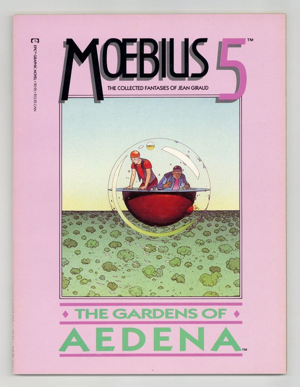 Published 1988 by Marvel/Epic.$45.00Volume 5 - 1st printing. "The Gardens of Aedena!" Story and art by Jean "Moebius" Giraud. Softcover, 8-in. x 11-in., 64 pages, full color. Mature Readers Cover price $9.95.