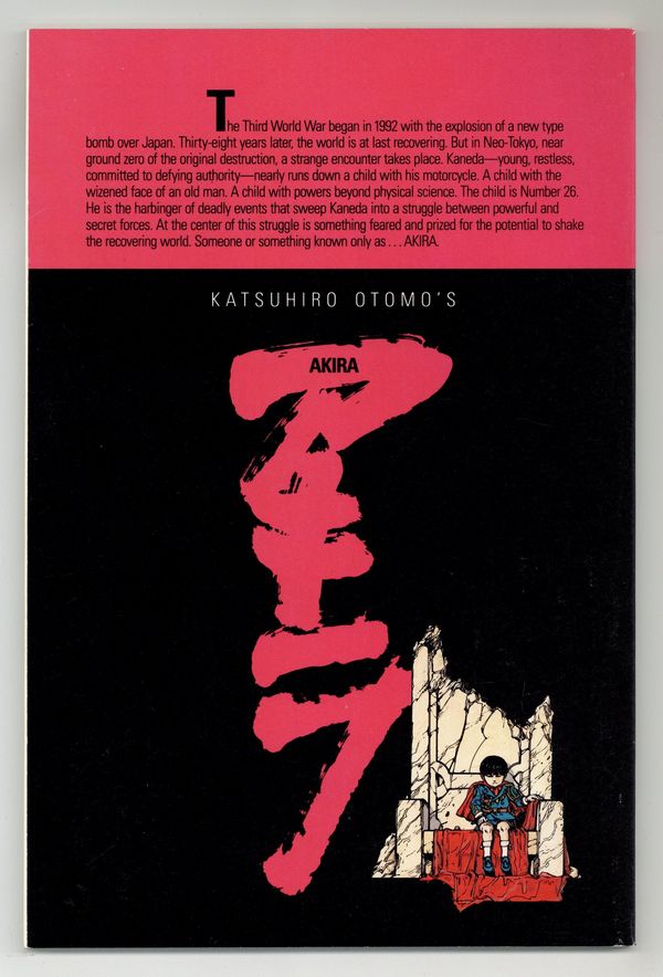 Ends Jan 26 7:12 PM CST Bid History 3 bids Current Bid $26 Your Secret Max Bid If you'd like to bid, please log in or register. 1st printing. Here it is – the first English translation of Katsuhiro Otomo's influential manga series, paving the way for the manga and anime craze to blossom in the English-speaking world. Decades after a mysterious explosion destroys Tokyo, teen bikers Tetsuo and Kaneda encounter a child with the face of an old man; his strange powers hold the key to the mystery. Story, art and cover by Otomo. Color by Steve Oliff, who pioneered the use of computer coloring with this series. Also includes an introductory article by Archie Goodwin. Mature readers. Cover price $3.50.