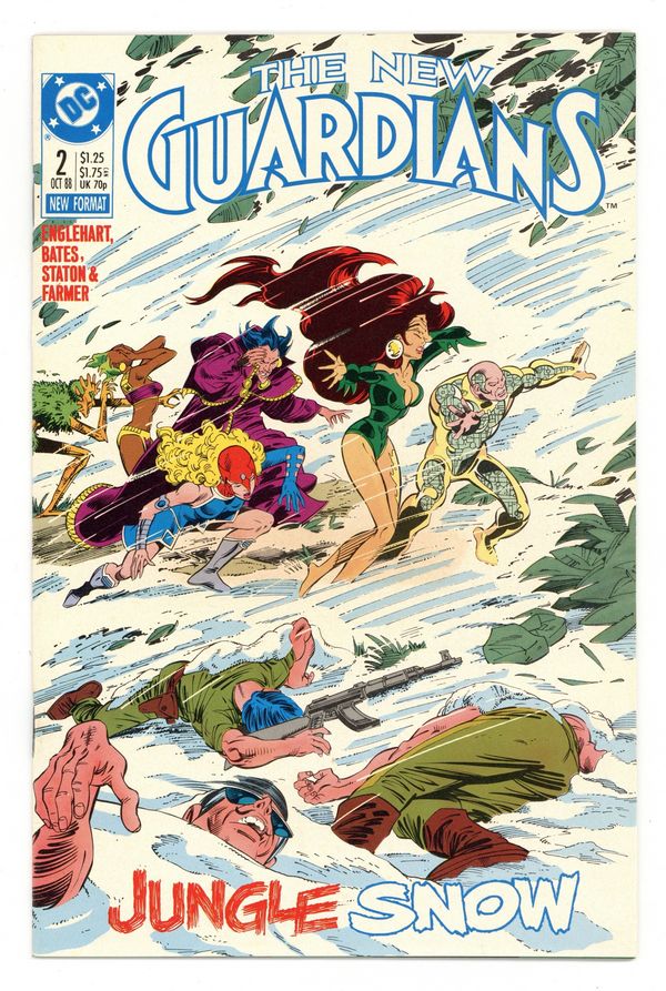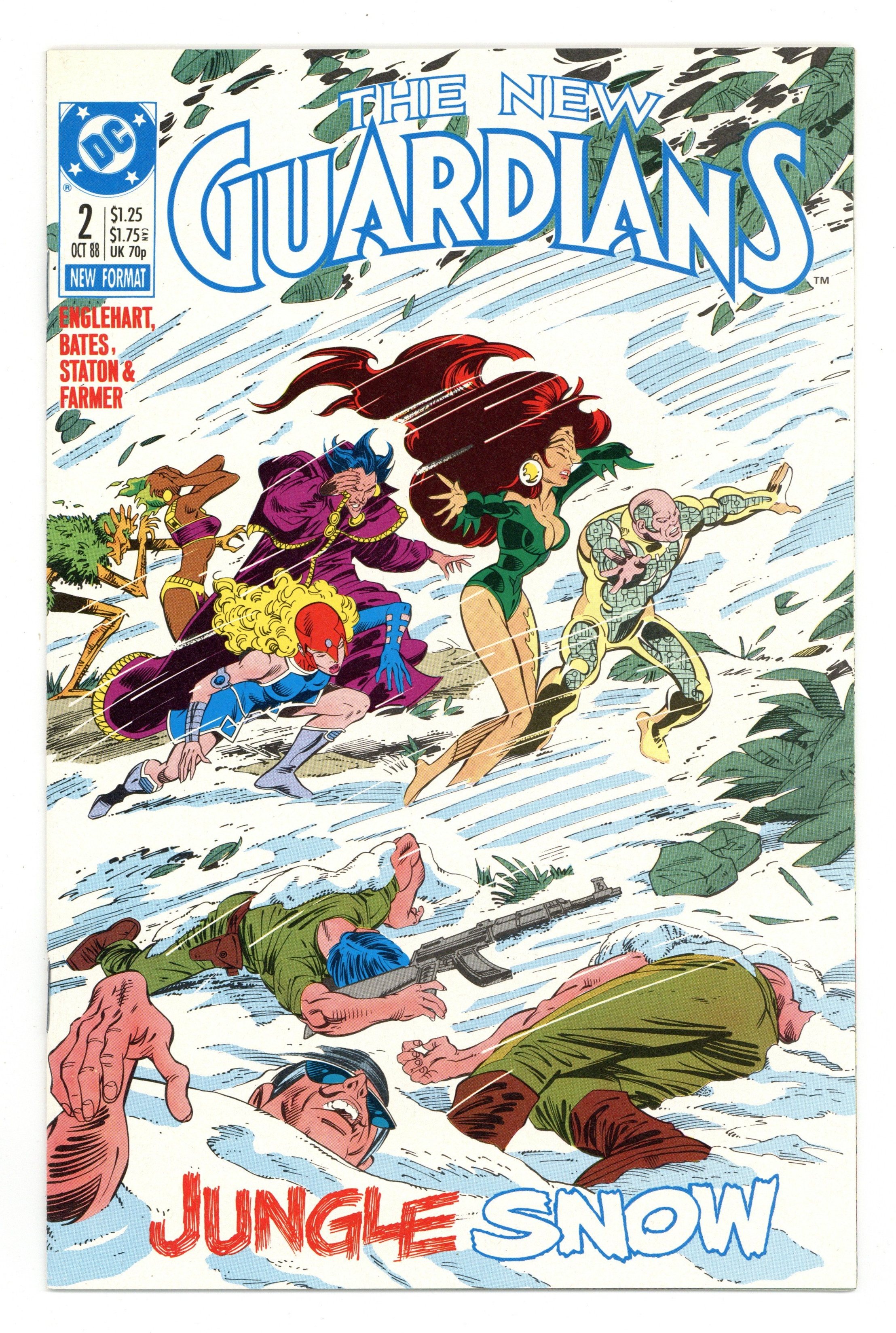 The New Guardians are on the verge of destroying a powerful Colombian drug cartel...if the deadly disease that afflicts the heroes doesn't destroy them first. Written by Steve Englehart and Cary Bates, with art by Joe Staton and Mark Farmer. Cover by Staton. New Format. Cover price $1.25.