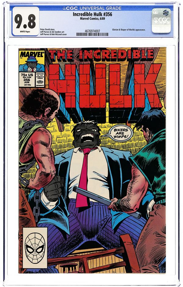 Cover pencils by Jeff Purves, inks by Bob McLeod. Control Problems, script by Peter David, pencils by Jeff Purves, inks by Jim Sanders III; Even though the Hulk has just killed him, Glorian promises the Shaper of Worlds that he will bring nobility to the grey monster; Glorian returns to life, much to the surprise of Marlo and puzzled emergency workers, and he is contacted by Nick Cloot who claims to be able to help make Hulk a happier person; Thinking that this is a test by the Shaper of Worlds, Glorian signs a contract in blood agreeing to accept Cloot's help; With his relationships on the rocks and the problem of Banner bugging him, Hulk wanders around Las Vegas looking for the best fight available. 36 pgs. $0.75. Cover price $0.75.