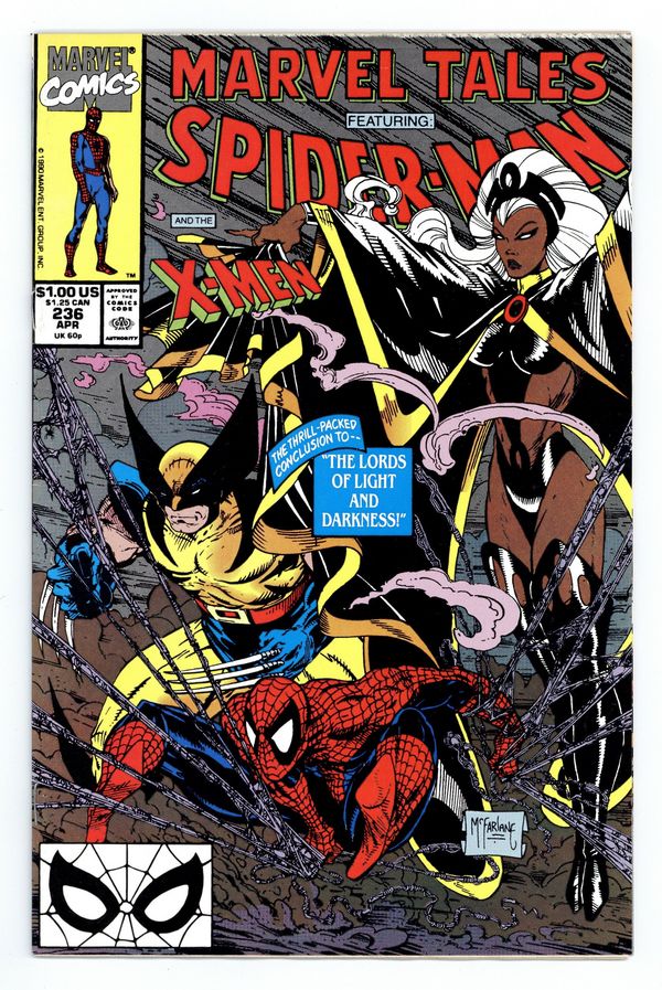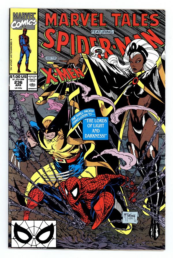 $15.50Direct Edition. Cover art by Todd McFarlane. The Lords of Light and Darkness Part 2], script by Bill Mantlo (Plot & Script), Chris Claremont (Plot), and Bonnie Wilford (Plot), pencils by Sal Buscema, inks by Mike Esposito; A band of researchers transformed into aspects of Hindu gods by a nuclear meltdown attacks Spidey and the X-Men; reprinted from Marvel Team-Up Annual (Marvel, 1976 series) #1. When Comes Captain Zooniverse!, script and art by Alan Kupperberg; Spider-Ham is possessed with the power of Captain Zooniverse and beats all of his foes for good. 36 pgs. $1.00. Cover price $1.00.