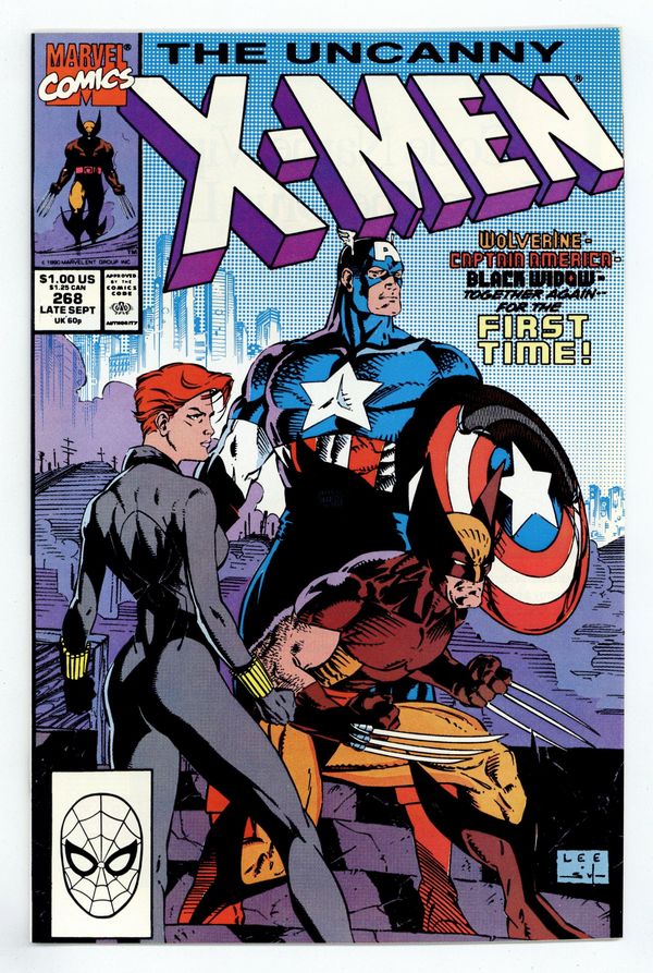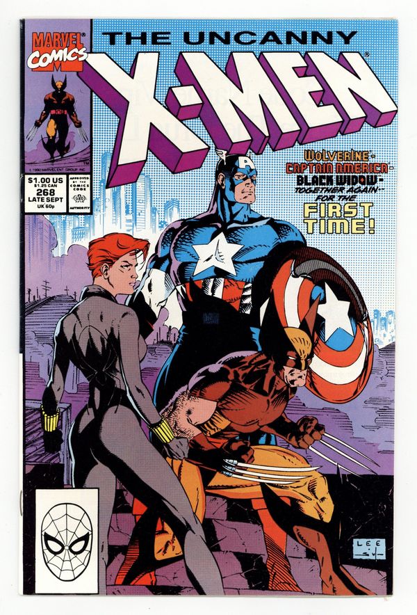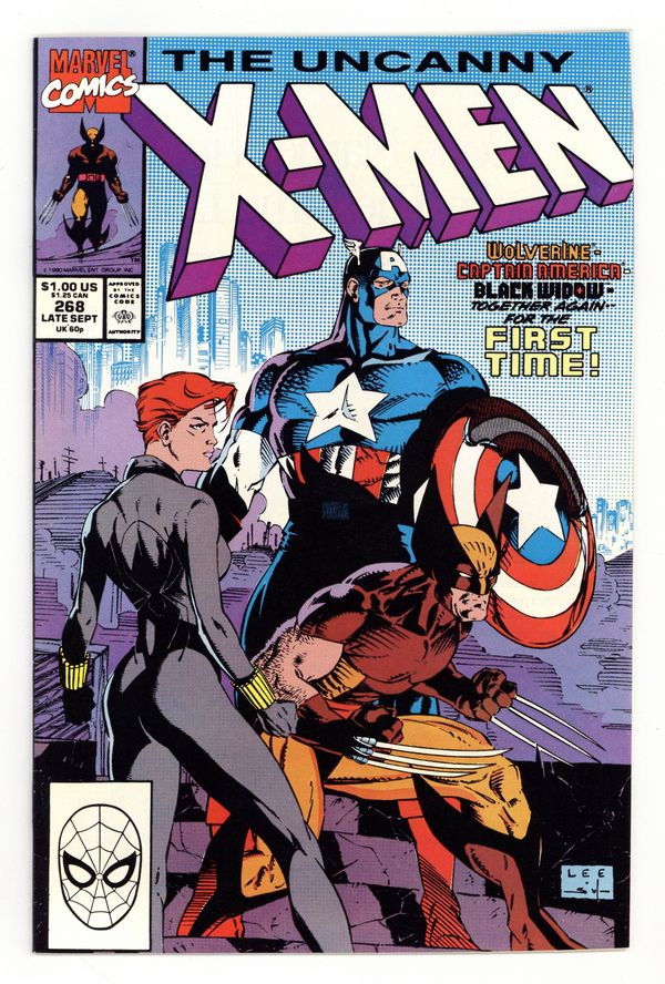 Starts Dec 15 1st Printing. Direct Edition. "Madripoor Knights!" Guest-starring Captain America and Black Widow. Story by Chris Claremont. Art by Jim Lee and Scott Williams. Cover by Jim Lee. In this classic flashback tale, during the second World War, a mysterious man by the name of Logan and a rookie Sentinel of Liberty must team up against the deadly Hand to save the life of a young girl. Meanwhile in the present, Wolverine, Jubilee, Psylocke, and Black Widow finish a caper that began nearly fifty years earlier. NOTE: JC Penney reprint exists with 30th Anniversary Spider-Man in UPC Box. 36 pgs. Cover price $1.00.