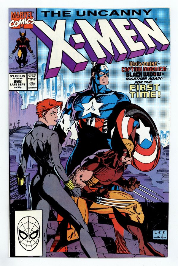 Starts Jan 3 1st Printing. Direct Edition. "Madripoor Knights!" Guest-starring Captain America and Black Widow. Story by Chris Claremont. Art by Jim Lee and Scott Williams. Cover by Jim Lee. In this classic flashback tale, during the second World War, a mysterious man by the name of Logan and a rookie Sentinel of Liberty must team up against the deadly Hand to save the life of a young girl. Meanwhile in the present, Wolverine, Jubilee, Psylocke, and Black Widow finish a caper that began nearly fifty years earlier. NOTE: JC Penney reprint exists with 30th Anniversary Spider-Man in UPC Box. 36 pgs. Cover price $1.00.