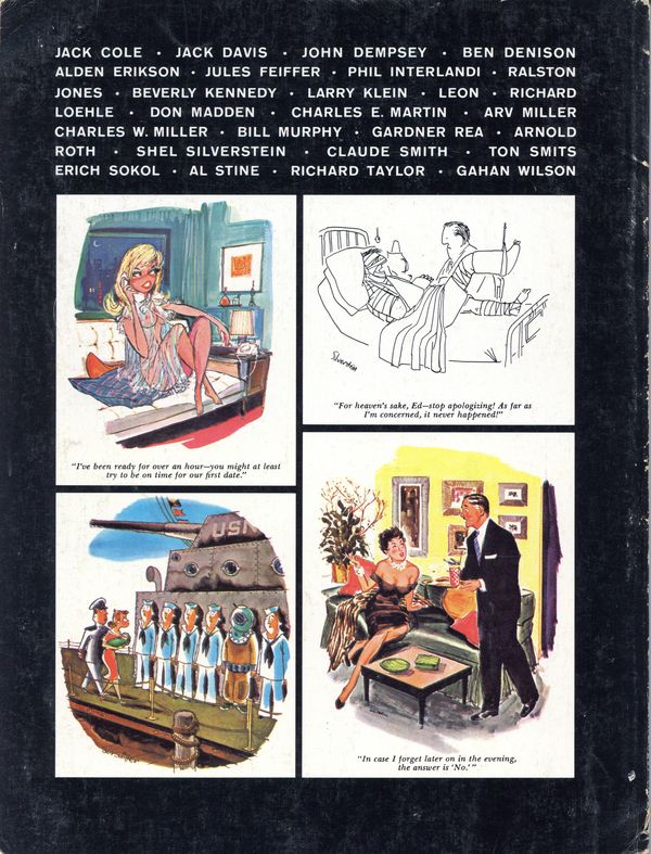 Volume 1 - 2nd and later printings. NOTE: Covers on reprints may vary. Edited by Hugh Hefner. Collection of the best cartoons to be featured in the legendary Playboy magazine. Includes more than 320 cartoons! Softcover, 8 1/2-in. x 11-in., 192 pages, PC/PB&W. Mature Readers Cover price $2.00.